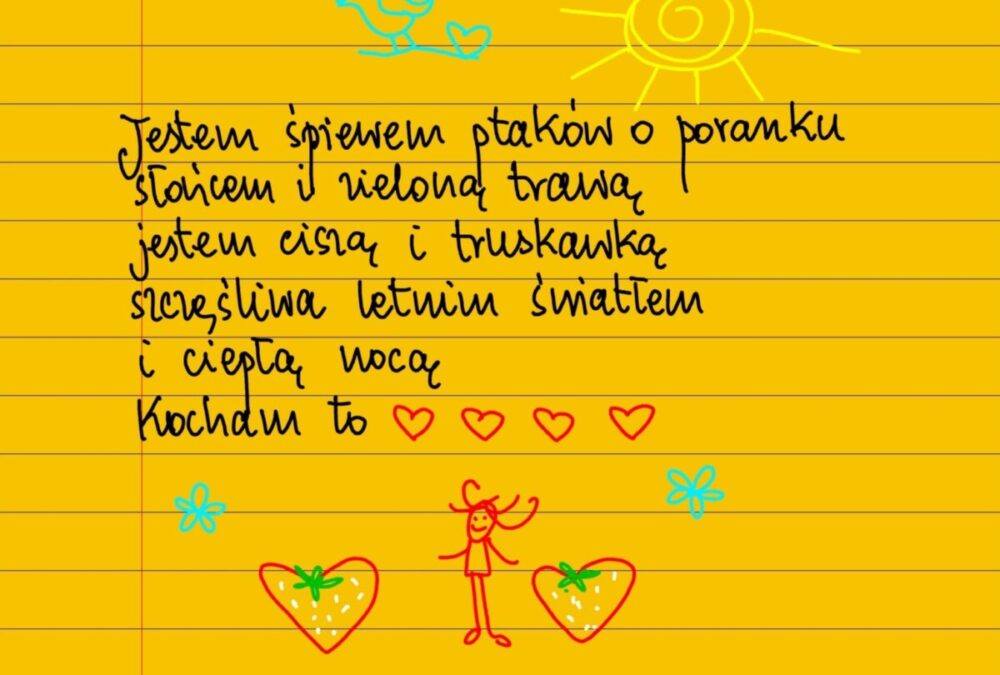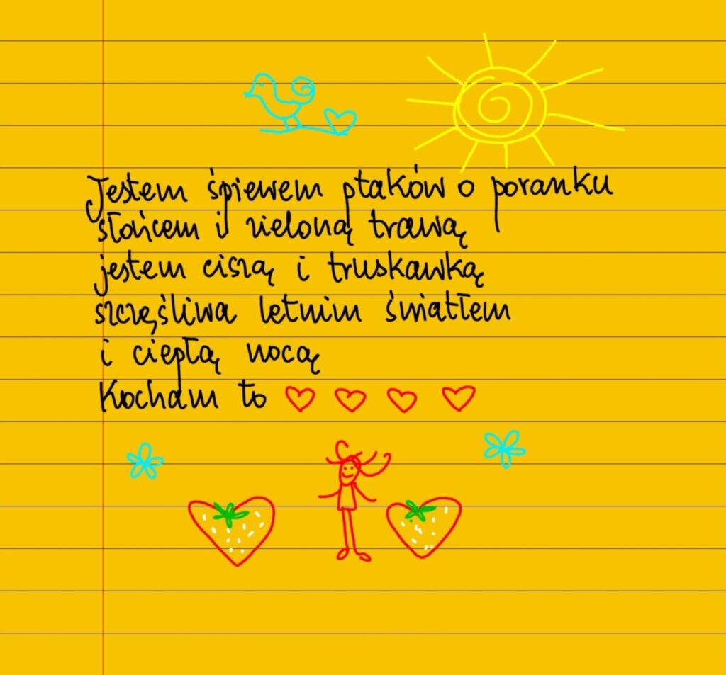 Jestem śpiewem ptaków o poranku, słońcem, zieloną trawą, jestem ciszą i truskawką. Szczęśliwa letnim światłem i ciepłą nocą. Kocham to ❤ #żółtakartka