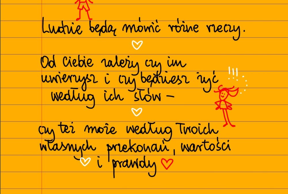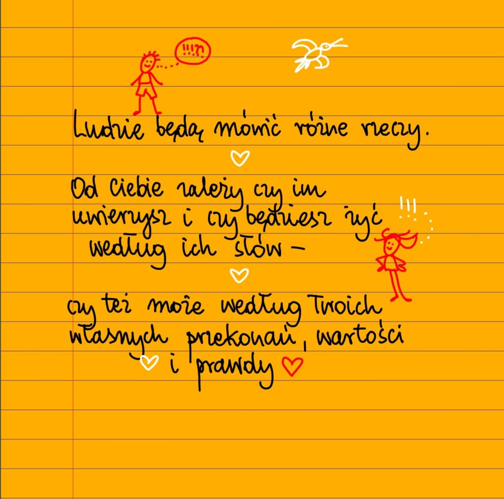 Żółte kartki Ludzie będą mówić różne rzeczy poniedziałek, 20.01.2025 Ludzie będą mówić różne rzeczy. Od ciebie zależy czy im uwierzysz i czy będziesz żyć według ich słów – czy też może według Twoich własnych przekonań, wartości i prawdy ❤ Udostępnij na Facebooku