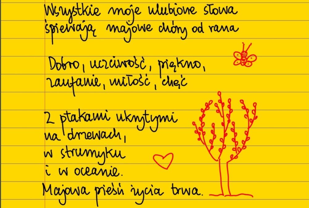 Wszystkie moje ulubione słowa śpiewają majowe chóry od rana. Dobro, uczciwość, piękno, zaufanie, miłość chęć. Z ptakami ukrytymi w drzewach, w strumyku i oceanie. Majowa pieść życia trwa. #żółtakartka