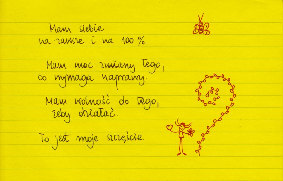 Mam siebie na zawsze i na 100%. Mam moc zmiany tego, co wymaga naprawy. Mam wolnośc do tego, żeby działać. To jest moje szczęście. #żółtakartka