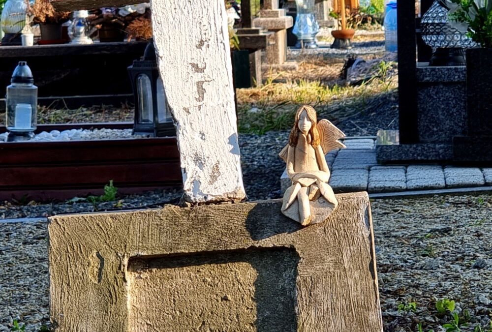 Tak spokojnie, miękko lśniło słońce w oddali gdy pchnęłam metalową furtkę. Przy ulicach, gdzie ciągle trwa ruch i ludzie nieustannie przemieszczają się naprzód, cmentarze pozostają zieloną oazą ciszy, zadumy i wieczności. Szłam przed siebie bez pośpiechu, ale z dziwną pewnością, tak jakbym wiedziała co się kryje w tamtej części cmentarza. I nagle nagrobki zrobiły się małe, niektóre wyglądały jak dziecinne łóżeczka. Gabryś, Ania, Julka, Karolek, Jaś, Agniesia… Niektóre dzieci przeżyły jeden dzień, inne kilka miesięcy albo kilka lat. Stopy przyprowadziły mnie na ten cmentarz u stóp prasłowiańskiej góry Ślęży do maleńkich grobów dzieci z figurkami aniołów. To nie przypadek, wczoraj był Dzień Matki. Wszyscy jesteśmy razem. Tutaj i tam. Po tej stronie i po drugiej stronie światła. Cmentarze są zwykle pełne życia. Kwitną kwiaty, śpiewają ptaki, pną się rośliny. Cmentarze przypominają o tym, że mamy życie. Tu wspaniały cud, dar i szansa. Bądź jak majowy kos, który zawsze śpiewa.