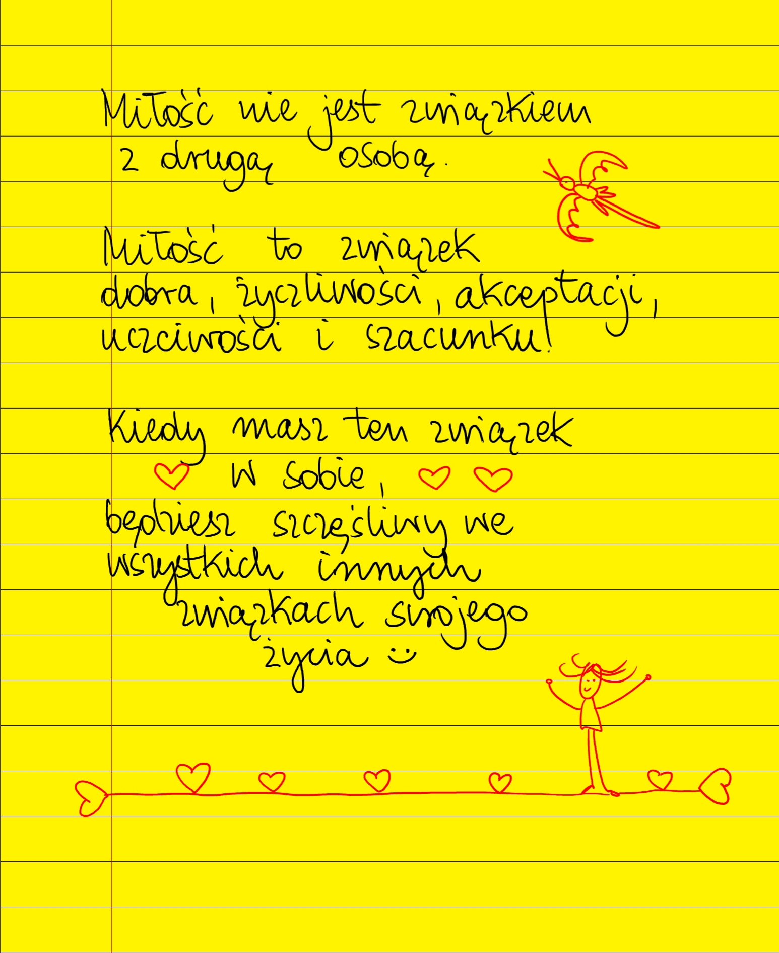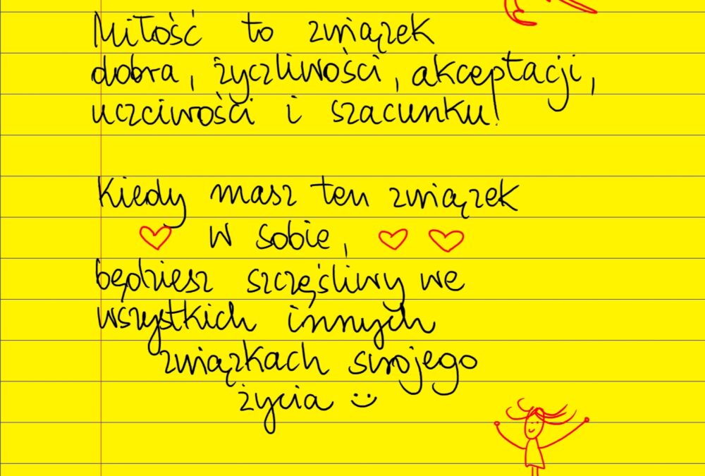 Miłość nie jest związkiem z drugą osobą. Miłość to związek dobra, życzliwości, akceptacji, uczciwości i szacunku. Kiedy masz ten związek w sobie, będziesz szczęśliwy we wszystkich innych związkach swojego życia ❤ #żółtakartka
