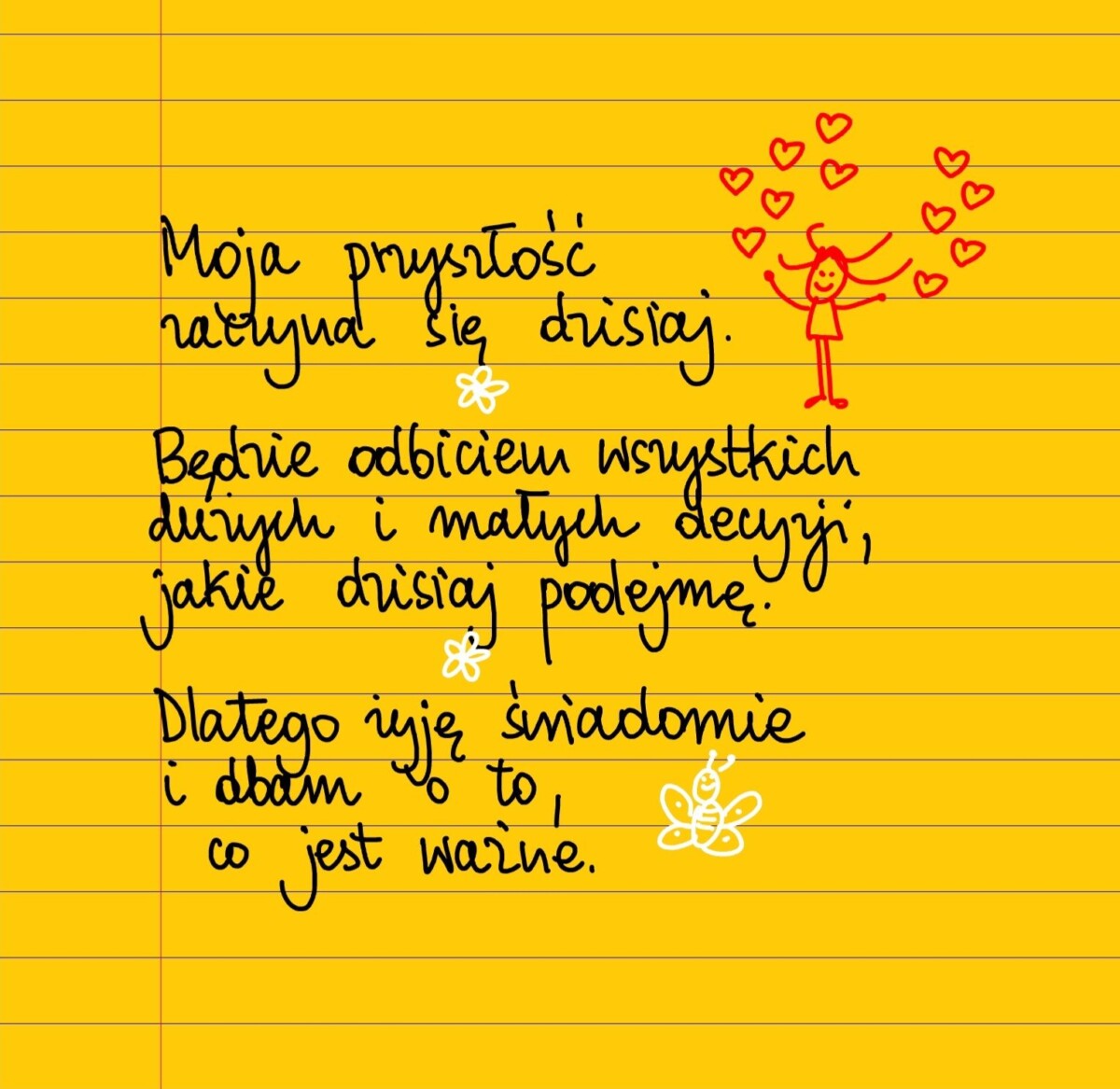 Żółte kartki Moja przyszłość zaczyna się dzisiaj. poniedziałek, 22.08.2022 Moja przyszłość zaczyna się dzisiaj. Będzie odbiciem wszystkich dużych i małych decyzji, jakie dzisiaj podejmę. Dlatego żyję świadomie i dbam o to, co jest ważne. #żółtakartka Udostępnij na Facebooku