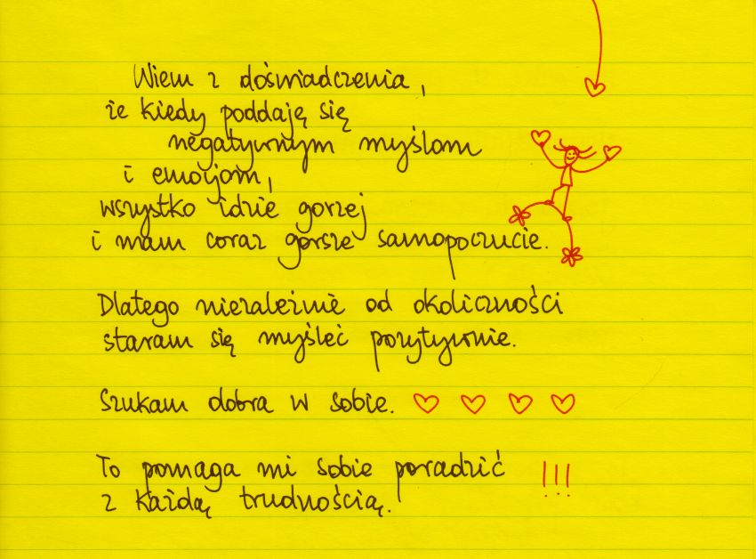 Wiem z doświadczenia, że kiedy poddaję się negatywnym myślom i emocjom, wszystko idzie gorzej i mam coraz gorsze samopoczucie. Dlatego niezależnie od okoliczności staram się myśleć pozytywnie. Szukam dobra w sobie. To pomaga mi sobie poradzić z każdą trudnością. #żółtakartka