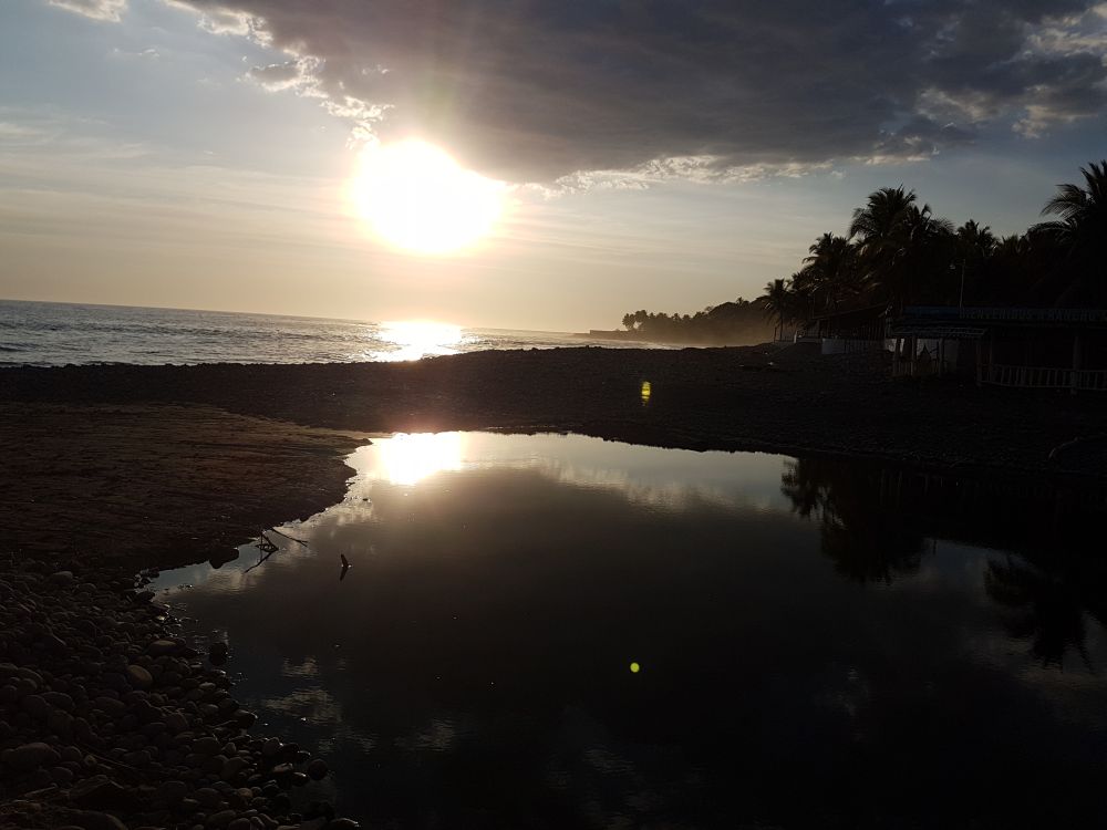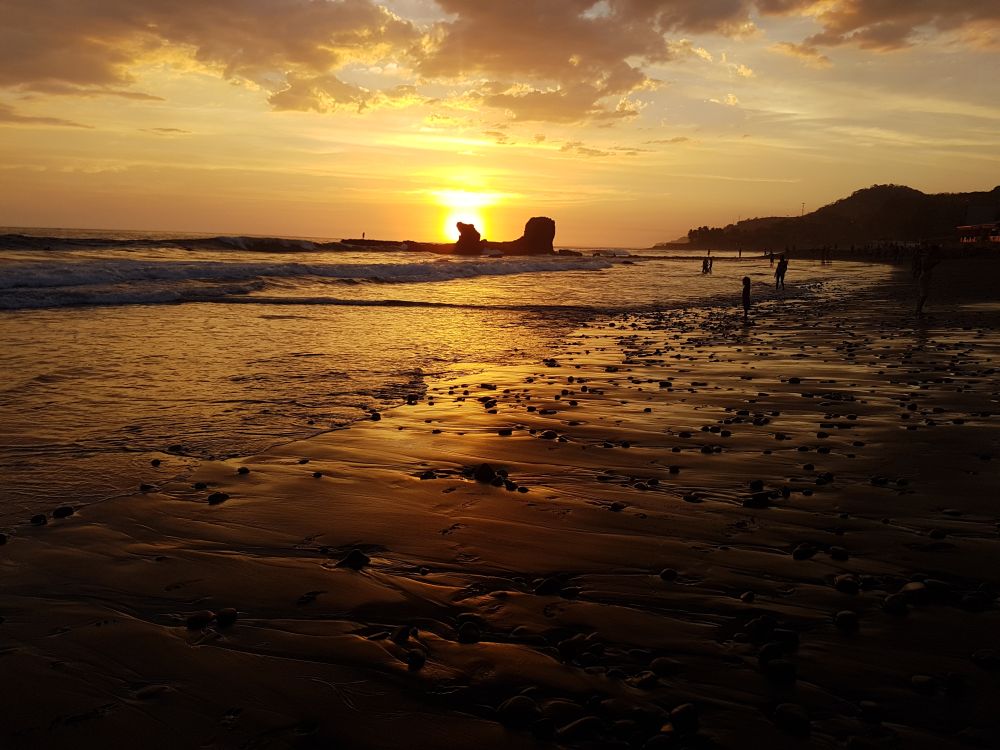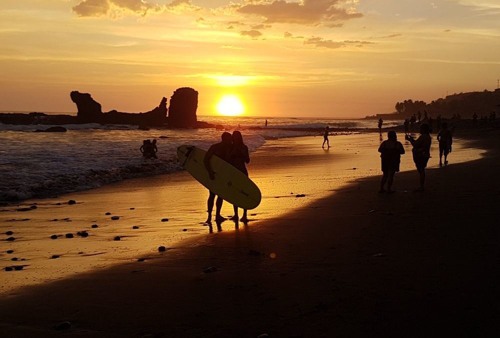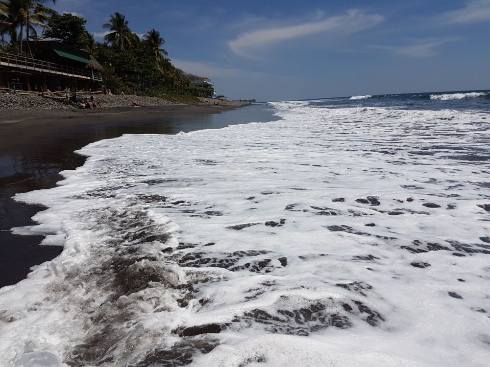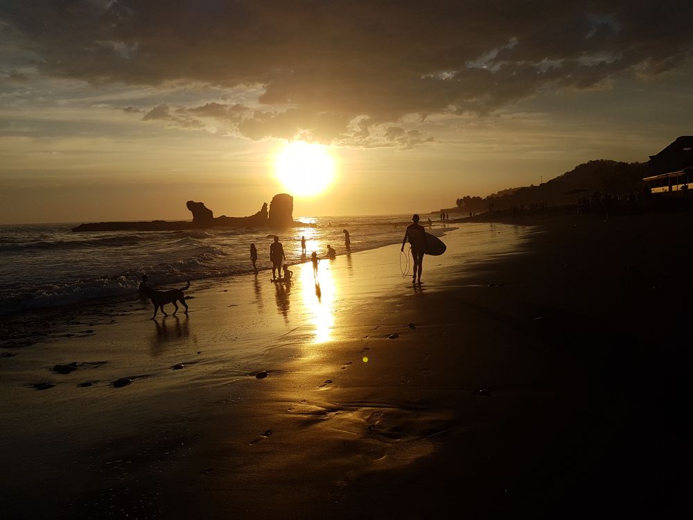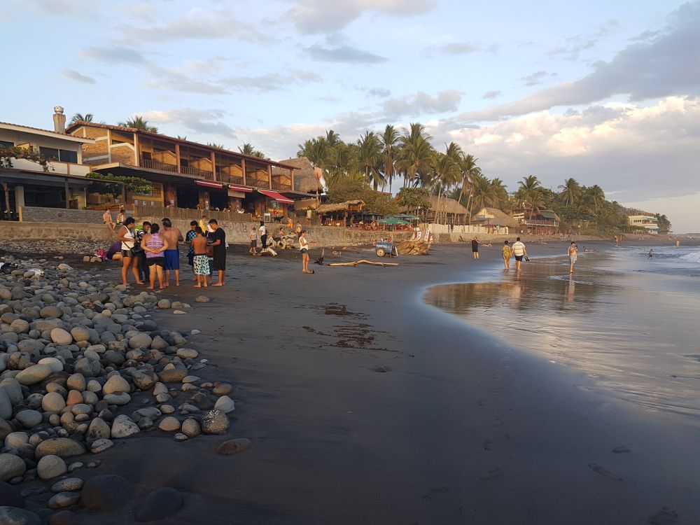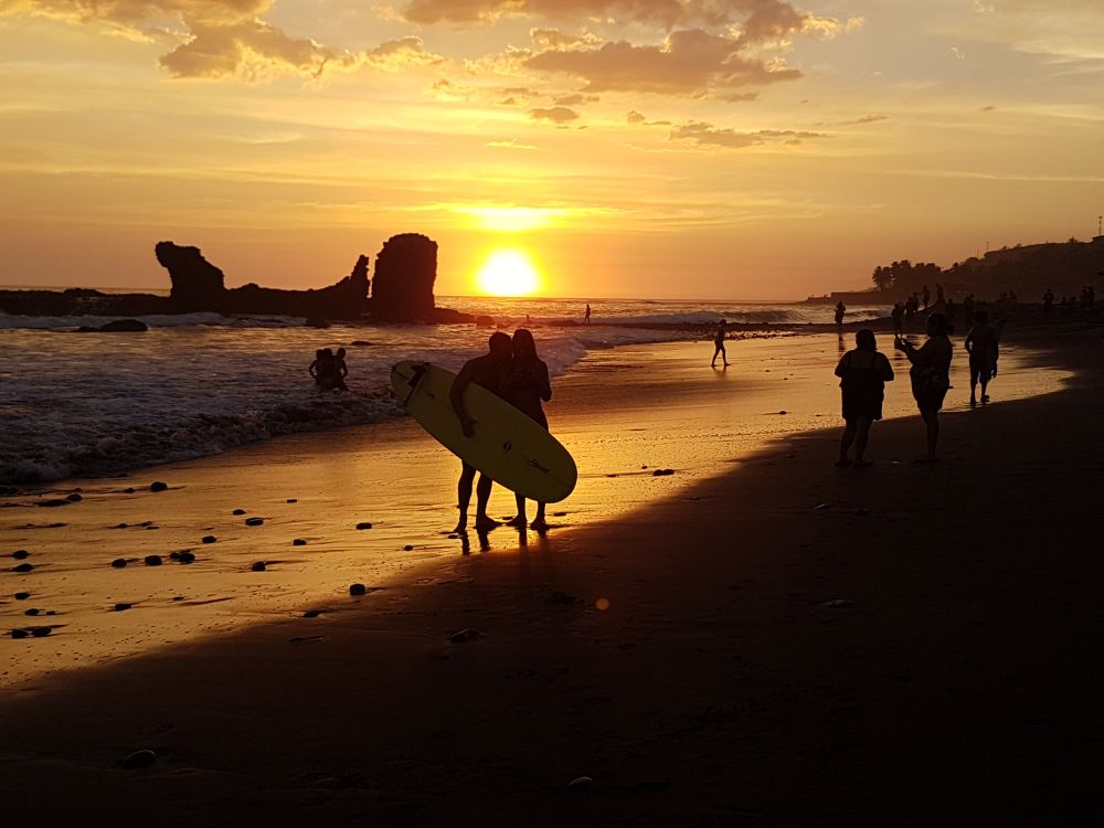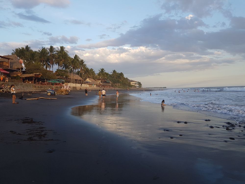 Fotografie Na plaży surferów w El Tunco, Salwador poniedziałek, 27.02.2017 Plaża w El Tunco, południowe wybrzeże Salwadoru nad Oceanem Spokojnym, Ameryka Środkowa. Udostępnij na Facebooku