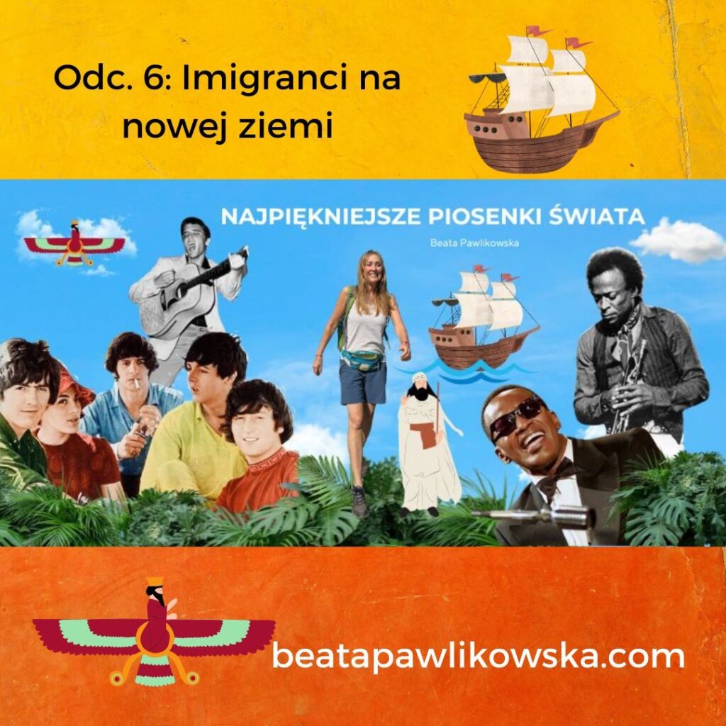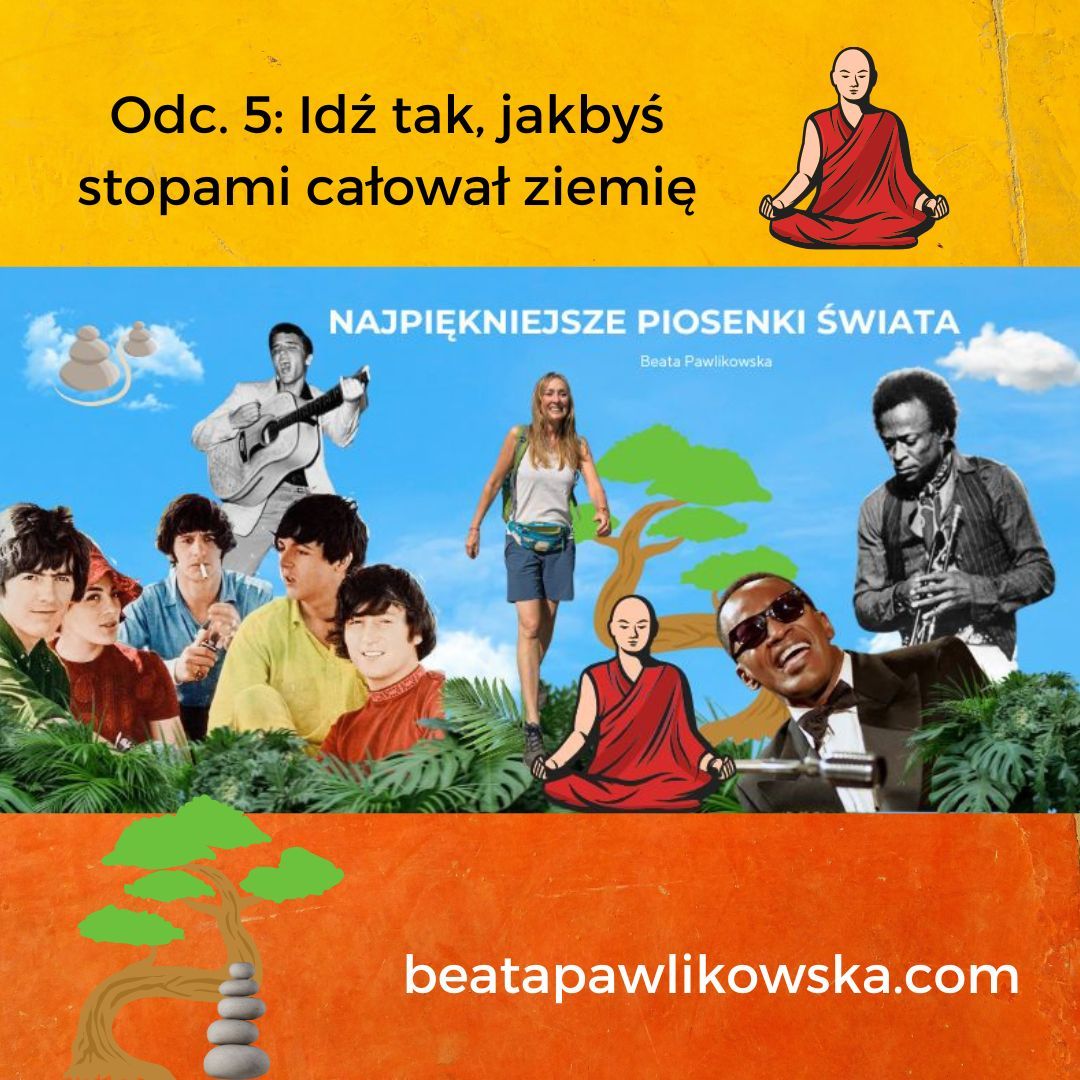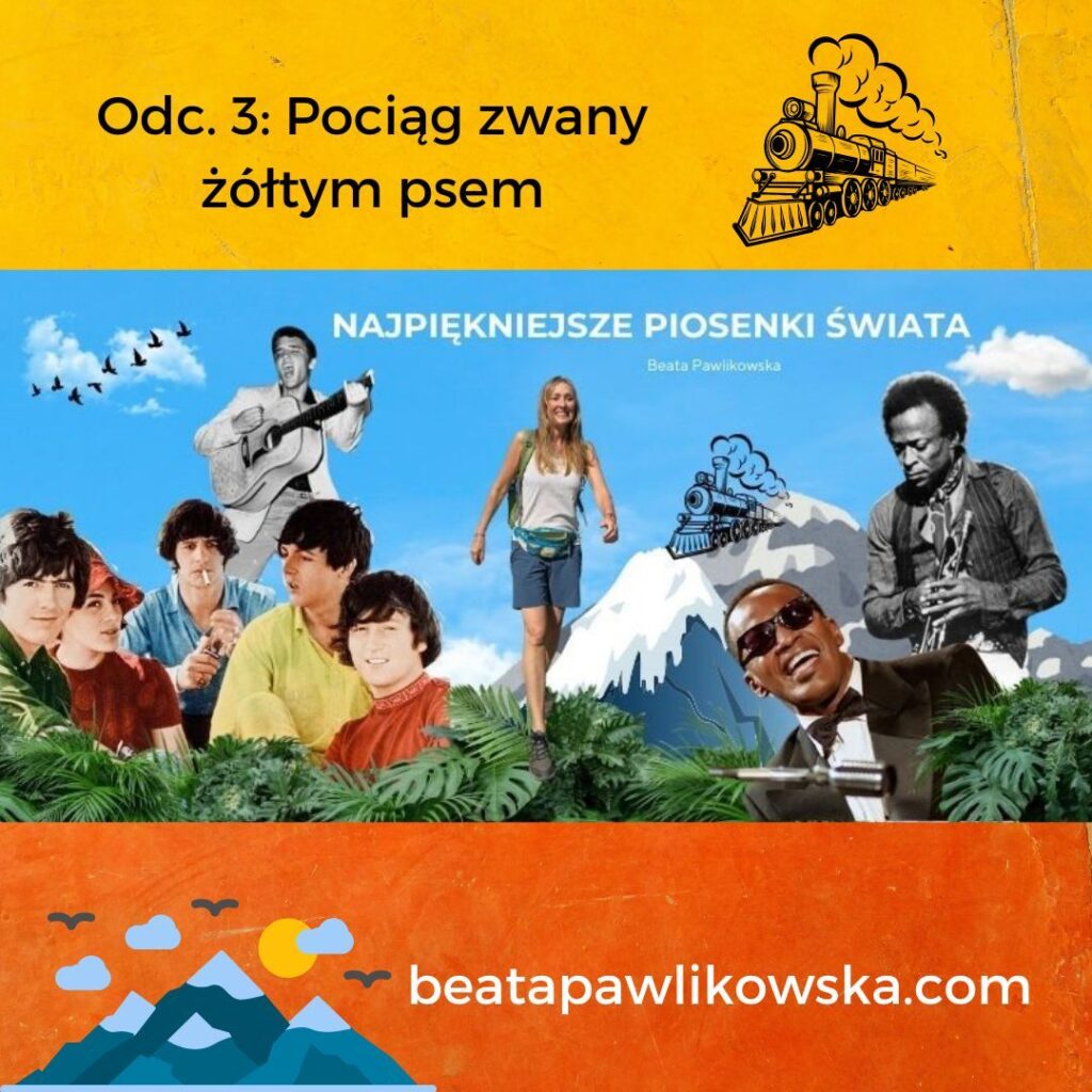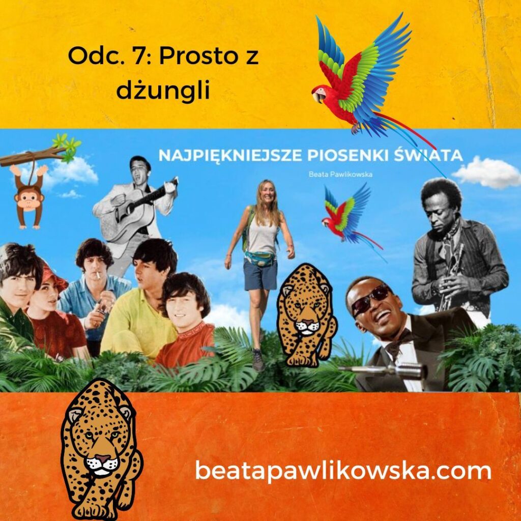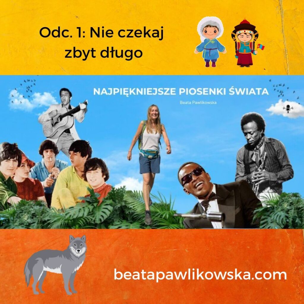001: O najbardziej niezwykłej rzeczy, jaką odkryłam na stepach Mongolii, o Szarym Wilku i Pięknej Łani, o tym czym jest synestezja oraz tengryzm, jak wygląda proces twórczy Pharrella Williamsa, a także o tym, że czasem trzeba stracić wszystko, żeby odnaleźć właściwą drogę. Muzycznie: Ray Charles, Madeleine Peyroux, Simply Red, Pharrell Williams, Bee Gees, Morcheeba, Billy Paul, Barbra Streisand. POSŁUCHAJ AUDYCJI002: O psychodelicznym stylu życia w San Francisco, festiwalu w Monterey w Kalifornii i deszczu podczas festiwalu Woodstock, o tym dlaczego Carlos Santana przestał stosować środki zmieniające świadomość i o białym króliku, którego spotkałam w górach Kolumbii. Muzycznie: Shakira, The Beatles, Jefferson Airplane, The Doors, Carlos Santana, The Mamas & The Papas, Eric Burdon & the Animals, Scott McKenzie, Buffalo Springfield. POSŁUCHAJ AUDYCJI003: O dworcu kolejowym, gdzie rozpoczął się blues, o moich podróżach pociągami przez Indie, Afrykę i na dachu, o nepalskiej góralce w Himalajach, o tym jak zmienia się podejście do życia w zależności od perspektywy, z jakiej się patrzy, a także o pociągu w stanie Mississippi o nazwie „żółty pies”. Muzycznie: Doobie Brothers, Talk Talk, Chris Rea, Willie Nelson, A.H. Rahman, Keb’Mo, Scrapper Blackwell, John Lee Hooker, Angelique Kidjo, Kayah, Cesaria Evora. POSŁUCHAJ AUDYCJI004: O nowej płycie, o pchlim targu w Bogocie, o wyprawie Paula Simona do Brazylii, o inspirującej historii życia pewnego artysty i o Manuelu, który nocami na plantacji mielił kawę. Muzycznie: Elvis Presley, Pink Floyd, David Gilmour, Sting, Paul Simon, Hugo Blanco, Melody Gardot. POSŁUCHAJ AUDYCJI005: O tym czym jest dobroć bez mądrości, o tym, że nie można czynić dobra kosztem samego siebie, o dwóch słynnych gwiazdorach muzyki, którzy postanowili zostać mnichami, o muzyce gospel, o piaskowych ogrodach w świątyni w Kyoto, o filozofii zen, japońskiej ceremonii parzenia herbaty i uważności. Muzycznie: John Lennon, George Michael, Tina Turner, Elvis Presley, David Bowie, Simon & Garfunkel, The Police, America, the Eagles, Kyu Sakamoto. POSŁUCHAJ AUDYCJIO Ludwiku XIV I akcji zaludniania francuskiej kolonii w Ameryce w XVII wieku, o słynnym zespole założonym przez syna imigranta z Cypru i syna imigranta z Egiptu, o tym dlaczego niektórzy pragną zostać gwiazdami i dlaczego czasem trzeba zmienić imię i nazwisko, żeby stać się sobą, o jednej z najstarszych religii świata – zaratusztrianizmie i o tym, że w pewnym sensie wszyscy jesteśmy imigrantami. Muzycznie: Chris Isaak, Madonna, George Michael, Wham, Elton John, Queen, Freddie Mercury, Ed Sheeran. POSŁUCHAJ AUDYC JIAudycja nadawana prosto z dżungli pełnej tropikalnych dźwięków. O tym dlaczego Amazonia jest jednym z najbardziej magicznych miejsc na Ziemi, o wyprawie na Orinoko, o cygańskim Sinatrze, o filmie Purple Rain. Muzycznie: Sting, Paul McCartney, Lou Reed, Robbie Robertson, Peter Gabriel, Kate Bush, Basia, Rosario Flores & El Cigala, Gipsy Kings, Dire Straits, Prince. POSŁUCHAJ AUDYCJIO dziewczynie, która spadła z samolotu, o tym, że każdemu zdarza się coś, co całkowicie odmienia życie, o niezwykłej historii pewnej płyty nagranej w salonie. Muzycznie: Bill Withers, The Beatles, Stevie Wonder, Billy Joel, Al. Green, Johnny Cash, The Highwaymen, Dionne Warwick, Elton John, Gladys Knight. POSŁUCHAJ AUDYCJIO dziewczynie, dla której powstała słynna piosenka, o kolorowych sukienkach, o dziewczynie z plaży w Rio, o Chłopakach z Plaży i ich niezwykłej płycie, a także o tym, że trzeba wierzyć w swoje dzieło, czasem nawet wbrew woli wytwórni płytowej. Muzycznie: Van Morrison, Eric Clapton, Bobby Vinton, The Beatles, Astrud Gilberto, Amy Winehouse, The Beach Boys, Chris Rea. POSŁUCHAJ AUDYCJIO ciepłej szarlotce w Himalajach i magicznej nocy w Bieszczadach, o tym, czego Roger nau-czył się od swojej mamy, o tym dlaczego Syd pomalował każdą ścianę na inny kolor, o eks-tremalnych poglądach i o tym jak powstała najsłynniejsza wokaliza świata. Muzycznie: Pink Floyd. POSŁUCHAJ AUDYCJI