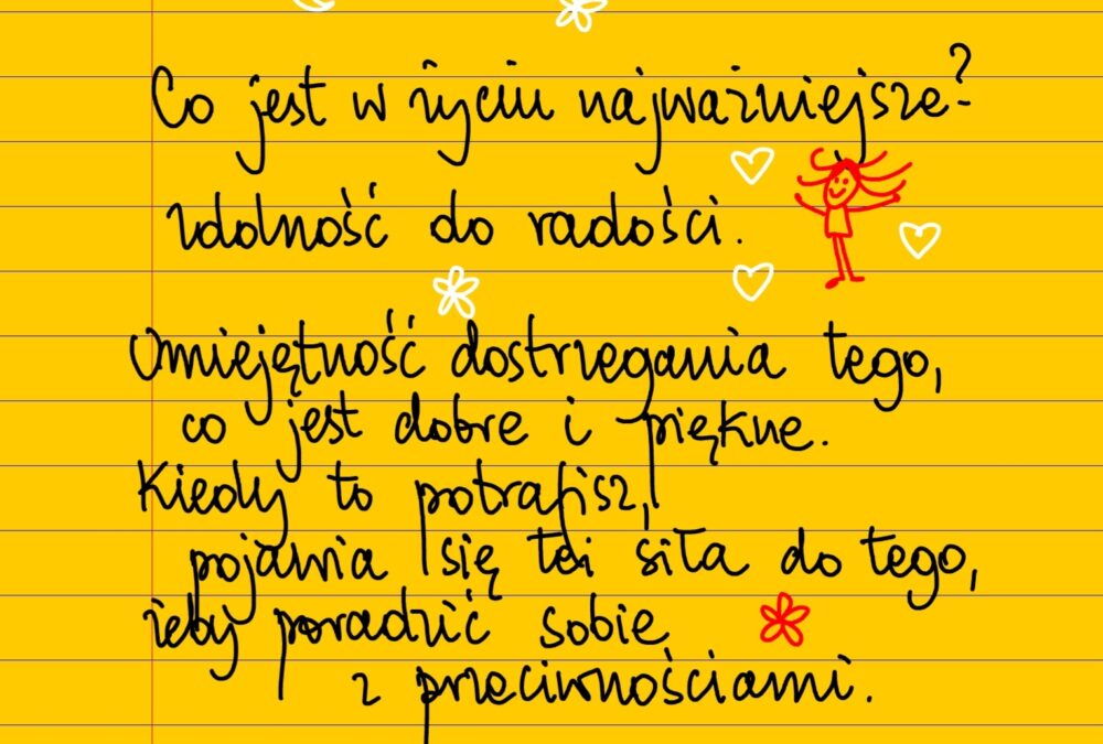 Co jest w życiu najważniejsze? Zdolność do radości ❤ Umiejętność dostrzegania tego, co jest dobre i piękne. Kiedy to potrafisz, pojawia się też siła do poradzenia sobie z przeciwnościami. #żółtakartka #beatapawlikowska