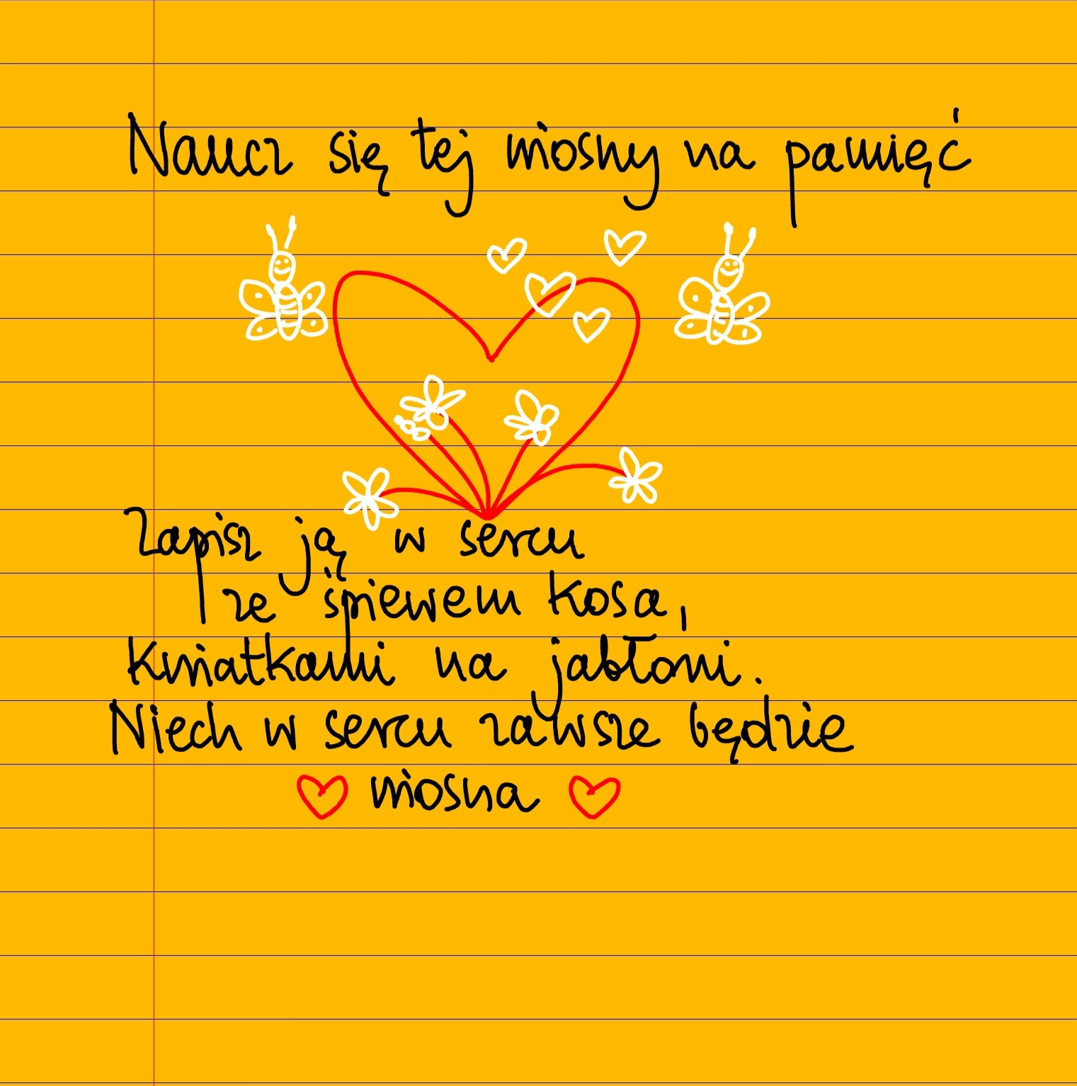 Żółte kartki Naucz się tej wiosny na pamięć wtorek, 09.04.2024 Naucz się tej wiosny na pamięć. Zapisz ją w sercu ze śpiewem kosa, aksamitnymi płatkami tulipanów i kwiatkach na jabłoni. Niech w sercu zawsze będzie wiosna. Udostępnij na Facebooku