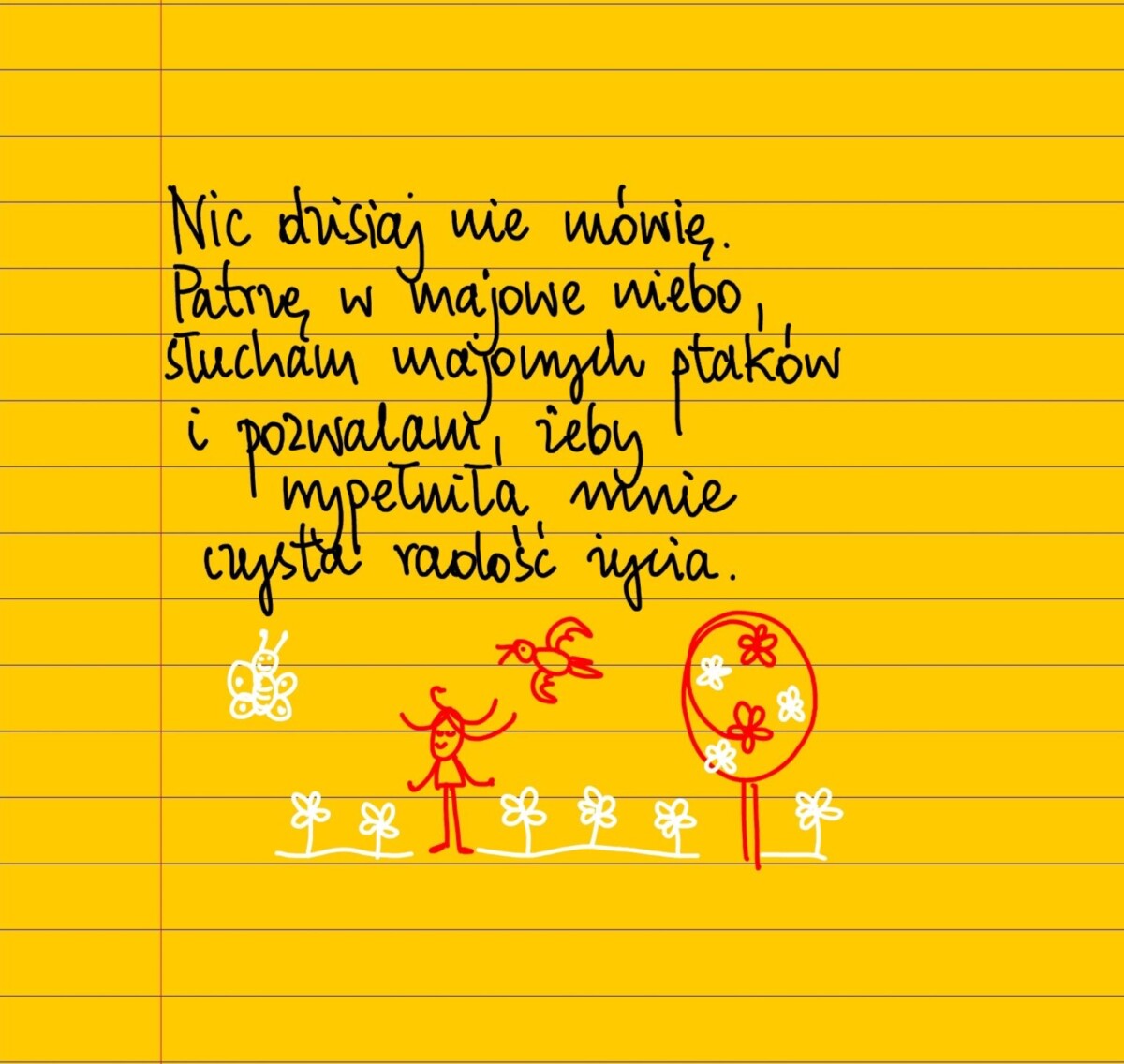 Nic dzisiaj nie mówię. Słucham majowych ptaków, patrzę w majowe niebo i pozwalam, żeby wypełniła mnie czysta radość życia. #żółtakartka