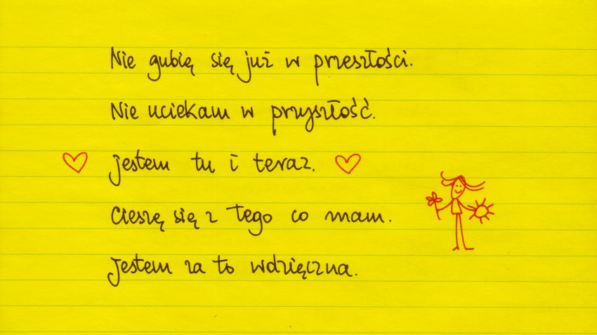 Żółte kartki Nie gubię się już w przeszłości poniedziałek, 22.11.2021 Nie gubię się już w przeszłości. Nie uciekam w przyszlość. Jestem tu i teraz. Cieszę się z tego co mam. Jestem za to wdzięczna. #żółtakartka Udostępnij na Facebooku