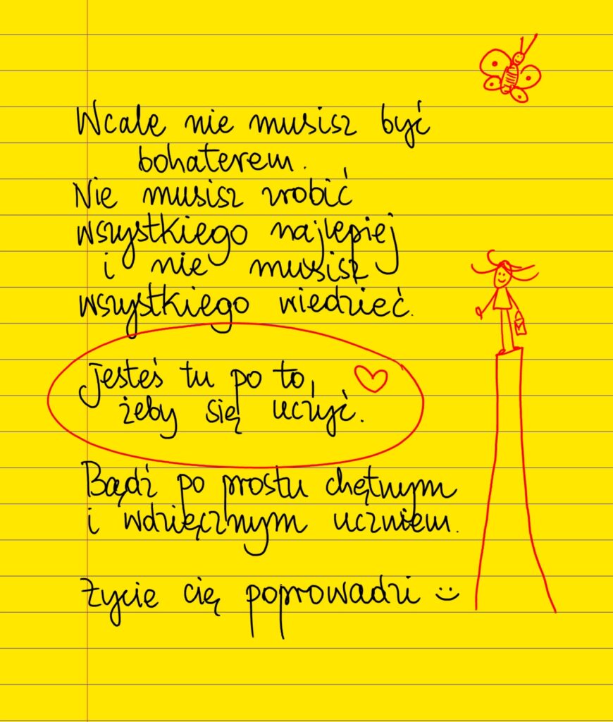 Wcale nie musisz byc bohaterem. Nie musisz zrobić wszystkiego najlepiej i nie musisz wszystkiego wiedzieć. Jesteś tu po to, żeby się uczyć. Bądź po prostu chętnym i wdzięcznym uczniem. Życie Cię poprowadzi ❤ #żółtakartka