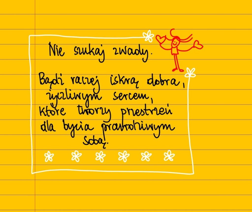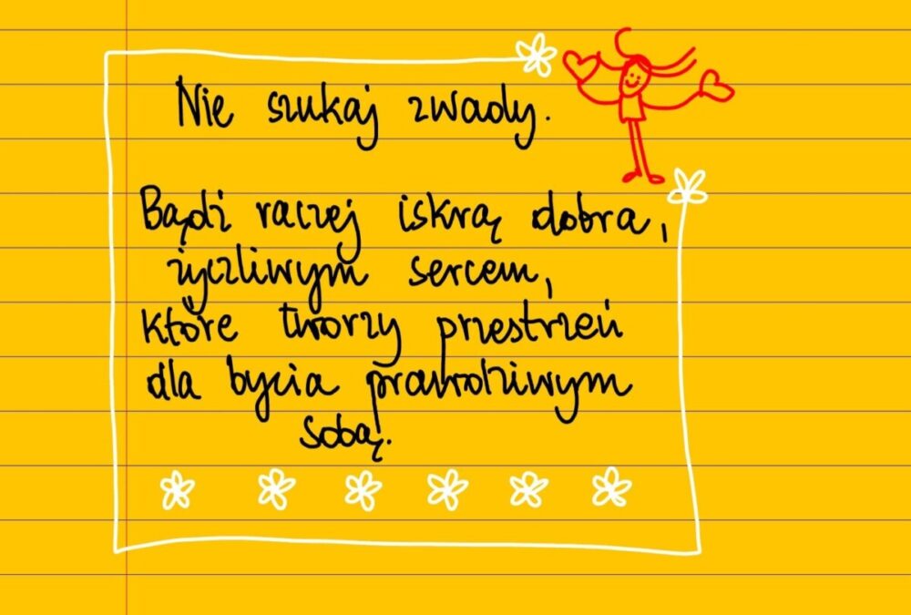 Żółte kartki Nie szukaj zwady czwartek, 27.03.2025 Nie szukaj zwady. Bądź raczej iskrą dobra, życzliwym sercem, które tworzy przestrzeń dla bycia prawdziwym sobą. #żółtakartka Udostępnij na Facebooku