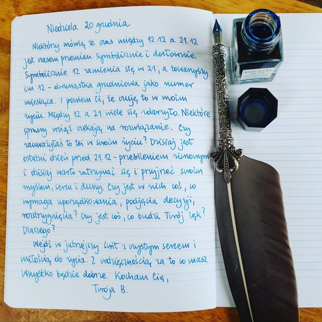Dzisiaj jest ostatni dzień przed 21.12 – przesileniem zimowym i dzisiaj warto zatrzymać się i przyjrzeć swoim myślom, sercu i duszy. Czy jest w nich coś, co wymaga uporządkowania, podjęcia decyzji, rozstrzygnięcia? Czy jest coś, co budzi Twój lęk? Dlaczego?