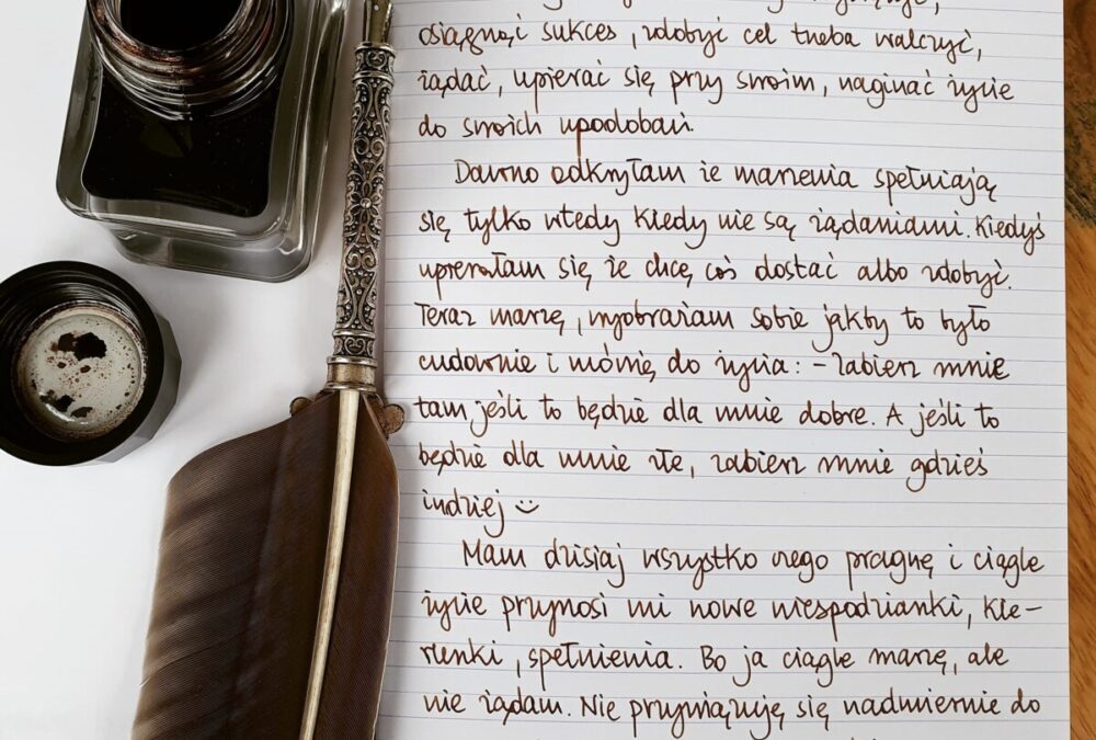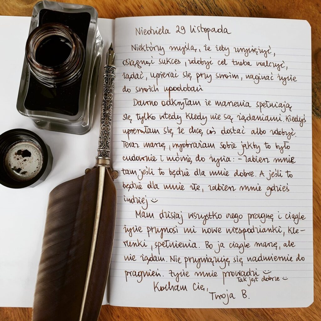 Mam dzisiaj wszystko czego pragnę i ciągle życie przynosi mi nowe niespodzianki, kierunki, spełnienia. Bo ja ciągle marzę, ale nie żądam. Nie przywiązuję się nadmiernie do pragnień. Życie mnie prowadzi. Tak jest dobrze 😊