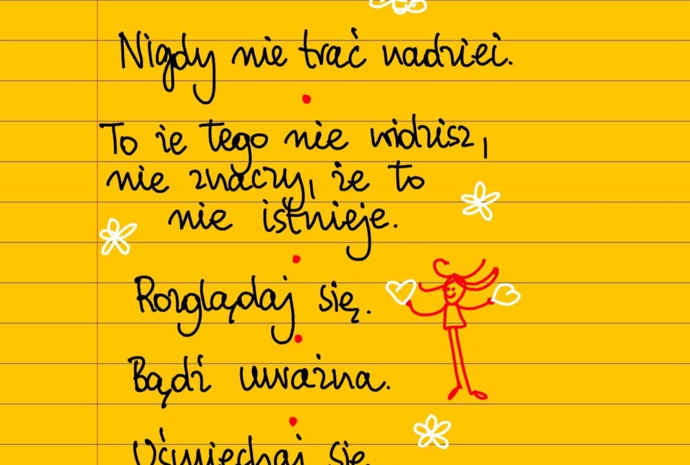 Żółte kartki Nigdy nie trać nadziei piątek, 09.06.2023 Nigdy nie trać nadziei. To że tego nie widzisz, nie oznacza, że to nie istnieje. Rozglądaj się. Bądź uważna. Uśmiechaj się ❤ #żółtakartka Udostępnij na Facebooku