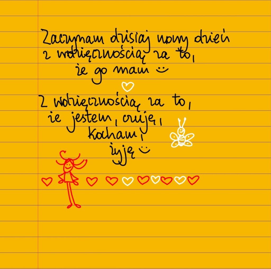 Zaczynam dzisiaj nowy dzień z wdzięcznością za to, że go mam 😊 Z wdzięcznością za to, że jestem, czuję, kocham, żyję 😊 #żółtakartka