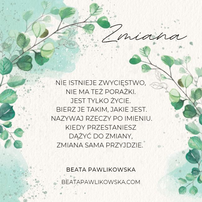 – Nie istnieje zwycięstwo, nie ma też porażki. Jest tylko życie. Bierz je takim, jakie jest. Nazywaj rzeczy po imieniu. Smutek nazywaj smutkiem, patrz na niego, zapytaj skąd przyszedł i dokąd chce cię zaprowadzić. Bądź z nim, obserwuj, wysłuchaj. Kiedy przestaniesz dążyć do zmiany, zmiana sama przyjdzie.