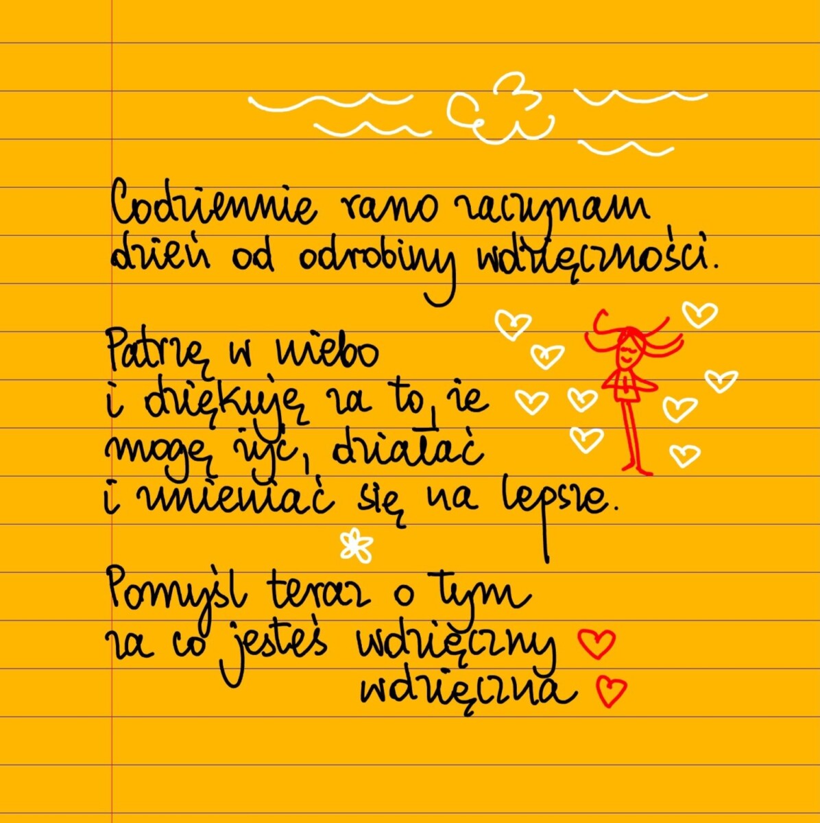 Codziennie rano zaczynam dzień od odrobiny wdzięczności. Patrzę w niebo i dziękuję za to, że mogę żyć, działać, zmieniać się na lepsze. Zatrzymaj się na chwilę. Pomyśl o tym za co jesteś wdzięczny/wdzięczna ❤ #żółtakartka