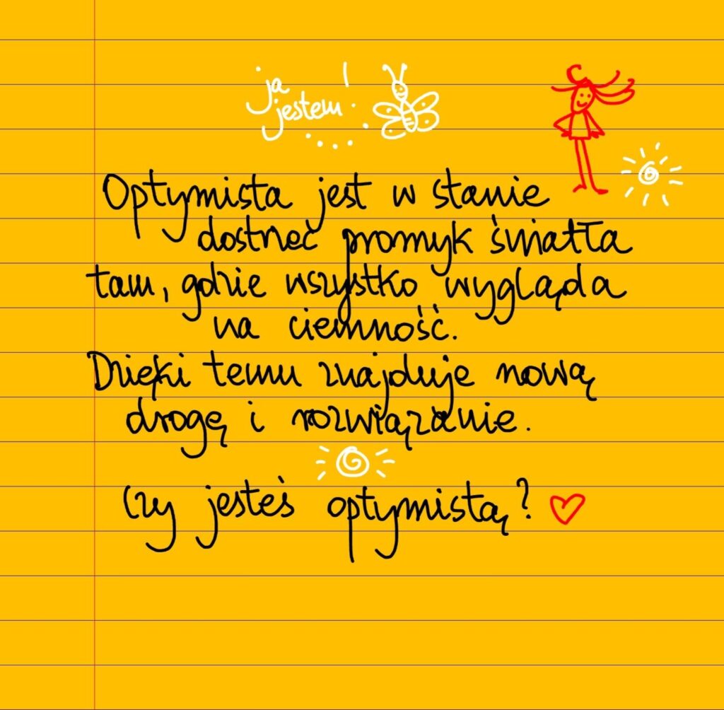 Optymista widzi promyk światła tam, gdzie wszystko wygląda na ciemność. Dzięki temu znajduje rozwiązanie i nową drogę. Czy jesteś optymistą? ❤