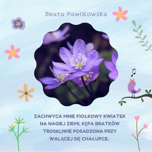 Ostatni dzień marca. Zimny wiatr ze wschodu. Pobielony drobnym śniegiem trawnik o świcie. Zachwyca mnie fiołkowy kwiatek na nagiej ziemi. Kępa bratków troskliwie posadzona przy walącej się chałupce. Pierwsza złota forsycja. Każdy zielony kiełek liści na witkach wierzb to zwycięstwo. Przyszliśmy tu znikąd. Jesteśmy i nie wiemy jak. Codziennie mamy do wyboru żyć albo nie żyć. Być jak zwycięski żółty żonkil gramolący się z trudem spod zmarzniętej ziemi. Śpiewać jak kos na powitanie poranka. Albo milczeć w niechętnej ciszy, w której wszystko zawsze uwiera i boli. Ten zimny wiatr wieje po to, żeby cię przebudzić.