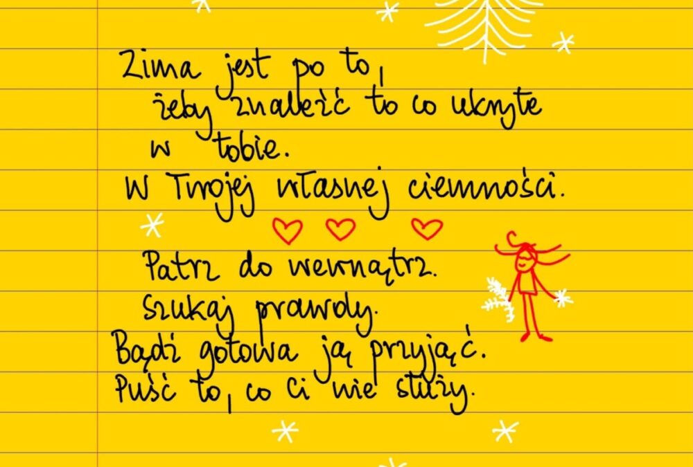 Zima jest po to, żeby znaleźć to co ukryte w tobie. W twojej własnej ciemności. Patrz do wewnątrz. Szukaj prawdy. Bądź gotowa ją przyjąć. Puść to co Ci nie służy. #żółtakartka