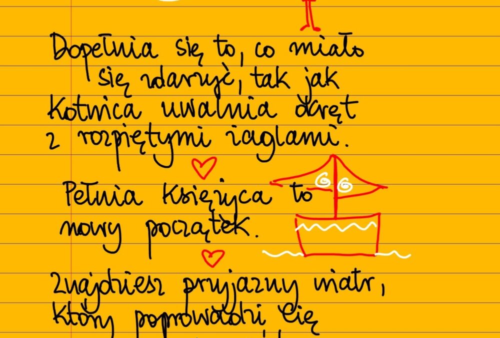 Dopełnia się to, co miało się zdarzyć, tak jak kotwica podniesiona z dna oceanu uwalnia okręt z rozpiętymi żaglami. Pełnia księżyca to nowy początek. Znajdziesz przyjazny wiatr, który poprowadzi cię naprzód. #żółtakartka