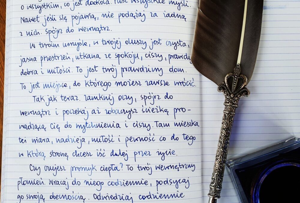 Tak jak teraz. Zamknij oczy, spójrz do wewnątrz i poczekaj aż zobaczysz ścieżkę prowadzącą Cię do wytchnienia i ciszy. Tam mieszka też wiara, nadzieja, miłość i pewność co do tego w którą stronę chcesz iść dalej przez życie.