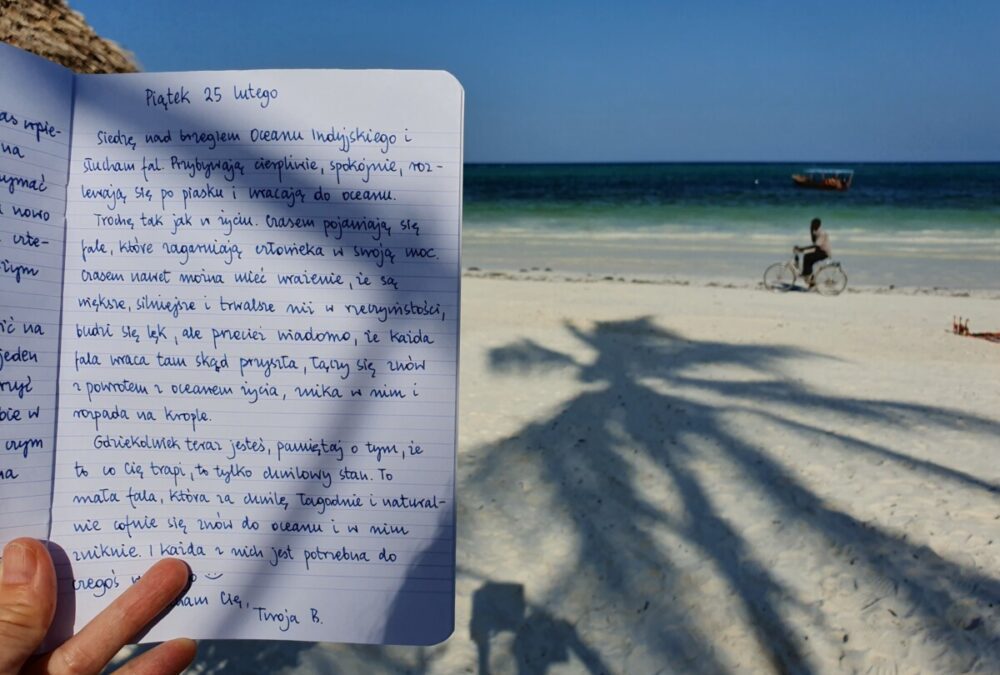 Siedzę nad brzegiem Oceanu Indyjskiego i słucham fal. Przybywają cierpliwie, spokojnie, rozlewają się po piasku i wracają do oceanu.