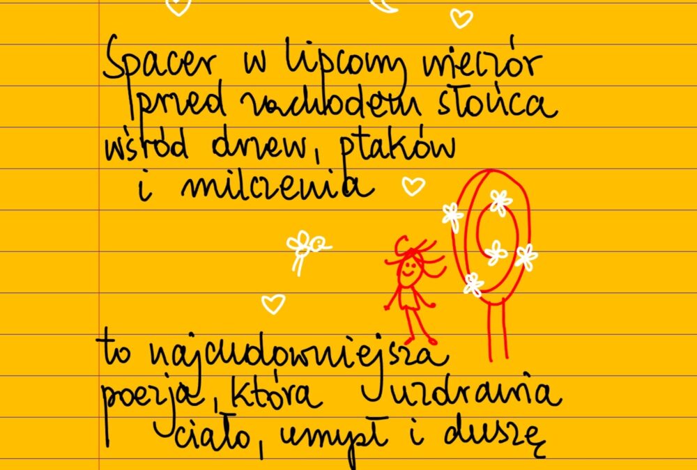Żółte kartki Poezja lipcowa czwartek, 04.07.2024 Spacer w lipcowy wieczór przed zachodem słońca wśród drzew, ptaków i milczenia to najcudowniejsza poezja, która uzdrawia ciało, umysł i duszę. Zrób to dzisiaj ❤ #żółtakartka #beatapawlikowska Udostępnij na Facebooku