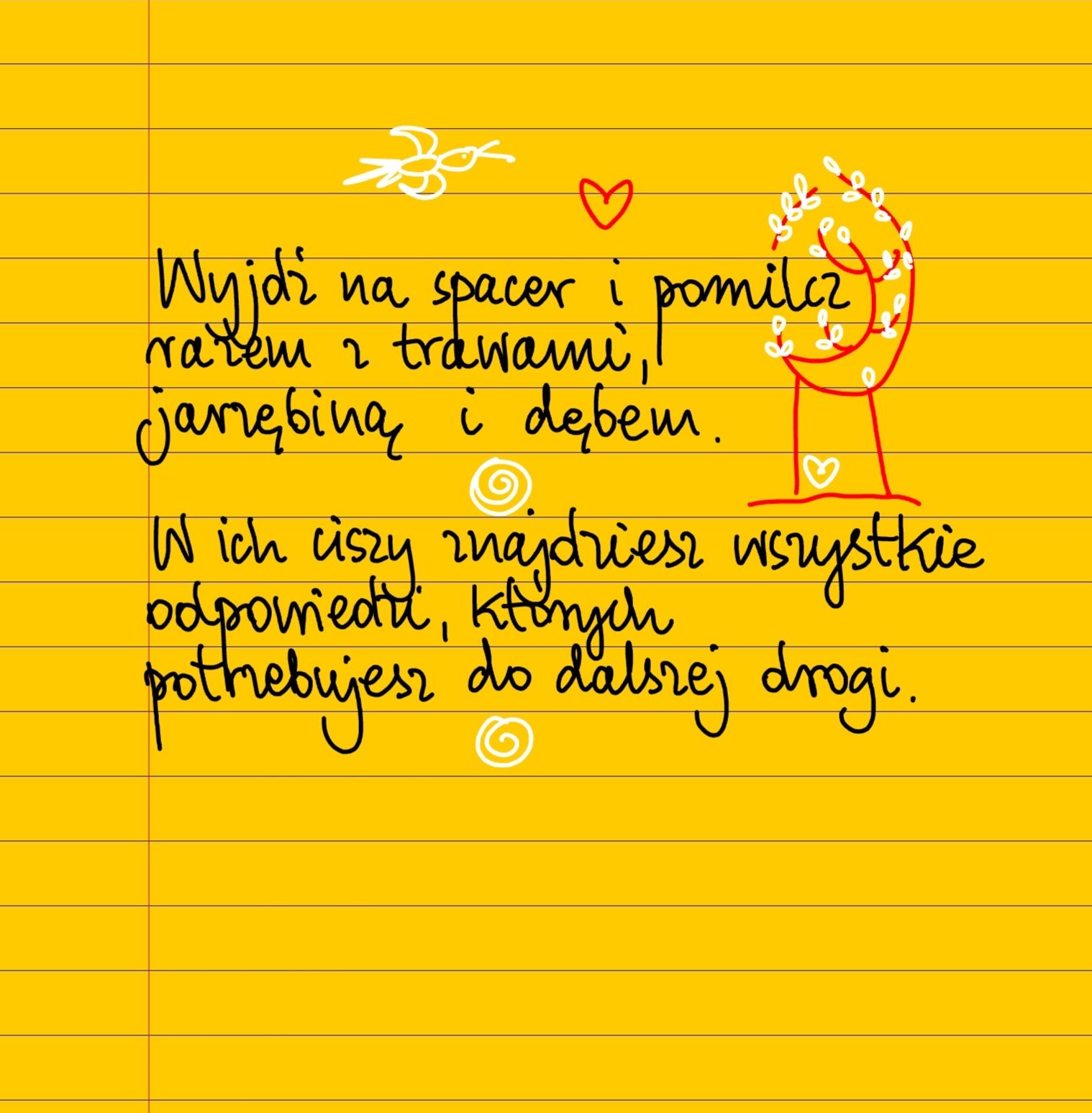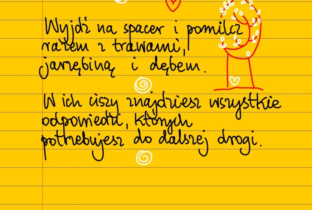 Żółte kartki Pomilcz z dębem środa, 20.08.2025 Wyjdź na spacer i pomilcz razem z trawami, jarzębiną i dębem. W ich ciszy znajdziesz wszystkie odpowiedzi, których potrzebujesz do dalszej drogi ❤ Udostępnij na Facebooku