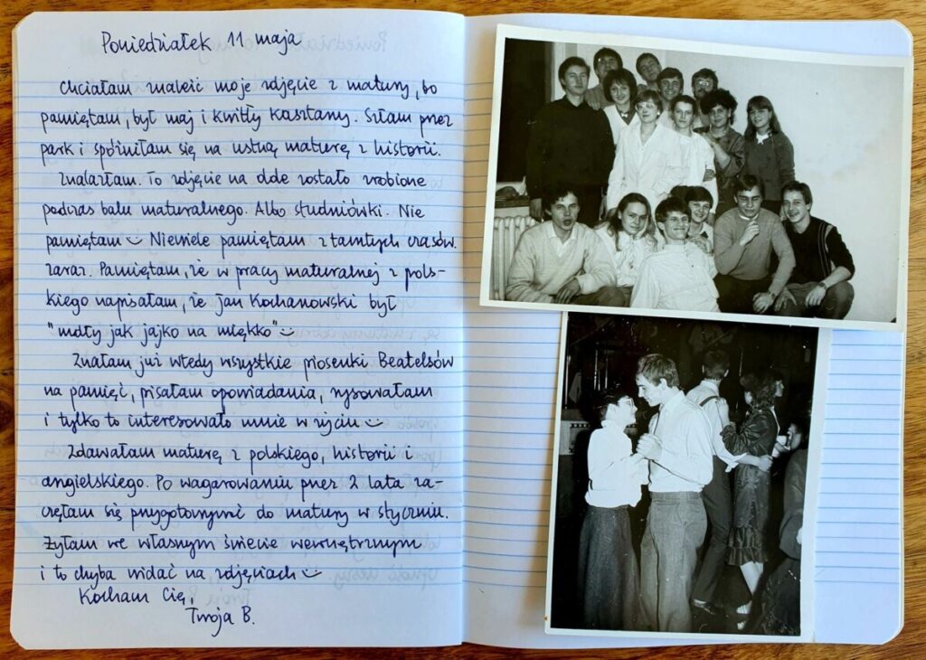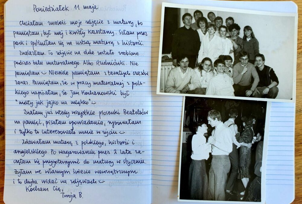 Chciałam znaleźć moje zdjęcie z matury, bo pamiętam, był maj i kwitły kasztany. Szłam przez park i spóźniłam się na ustną maturę z historii.