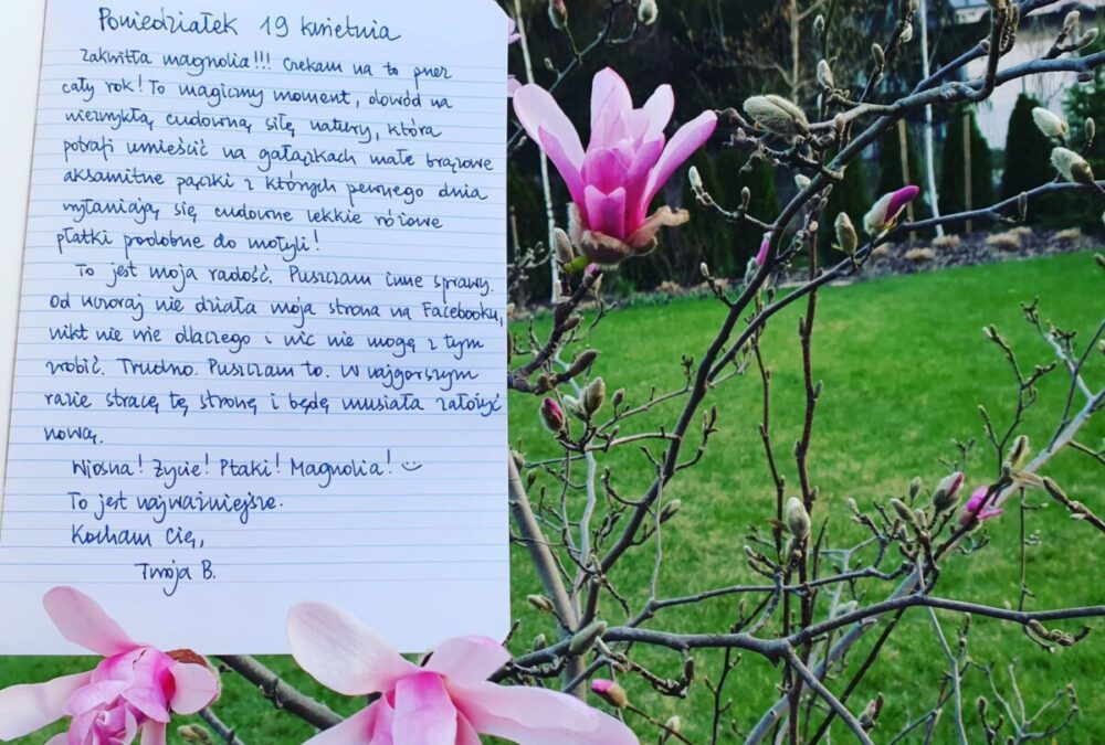 Zakwitła magnolia!!! Czekam na to przez cały rok! To magiczny moment, dowód na niezwykłą, cudowną siłę natury, która potrafi umieścić na gałązkach małe brązowe aksamitne pączki, z których pewnego dnia wyłaniają się cudowne, lekkie różowe płatki podobne do motyli.