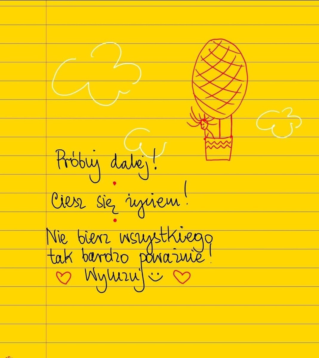 Żółte kartki Próbuj dalej! piątek, 17.03.2023 Próbuj dalej! Ciesz się życiem! Nie bierz wszystkiego tak bardzo na poważnie ❤️ Wyluzuj 😊 #żółtakartka Udostępnij na Facebooku