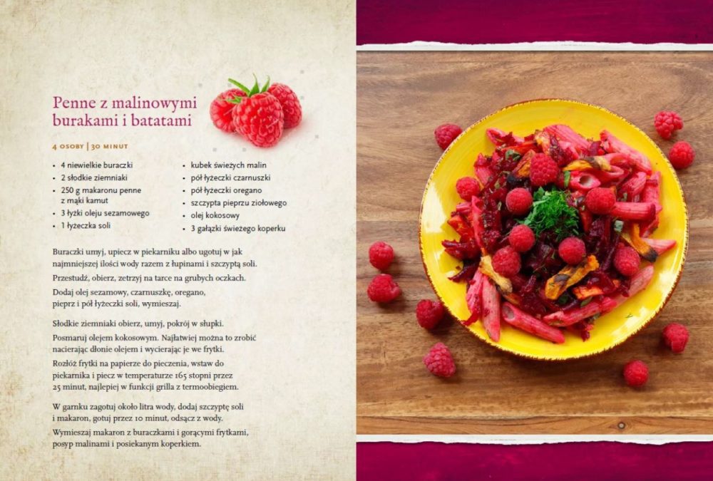 Przepis na penne z malinowymi buraczkami i słodkimi ziemniakami, przepis z ksiązki „MAKARONY ŚWIATA”, premiera w październiku