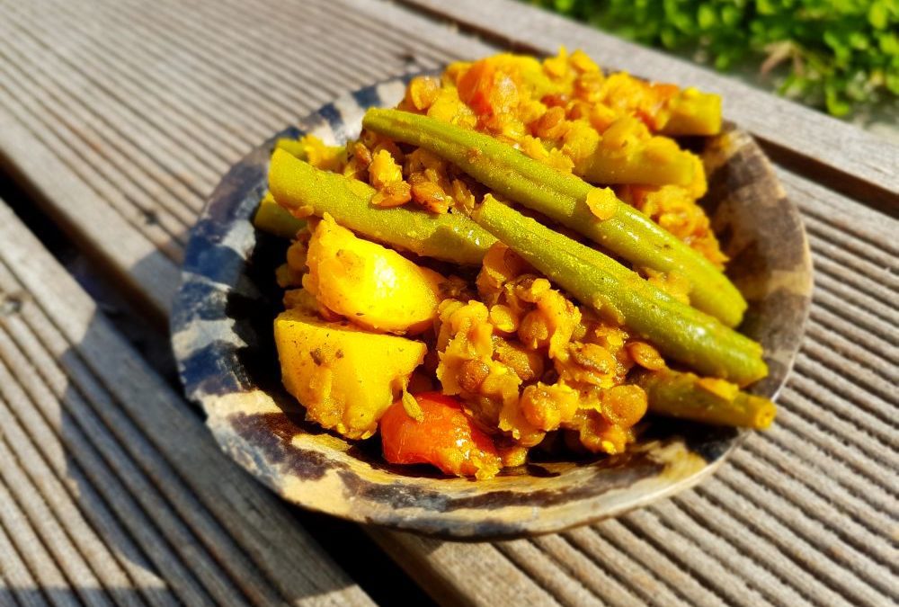 Curry z soczewicy z fasolką szparagową