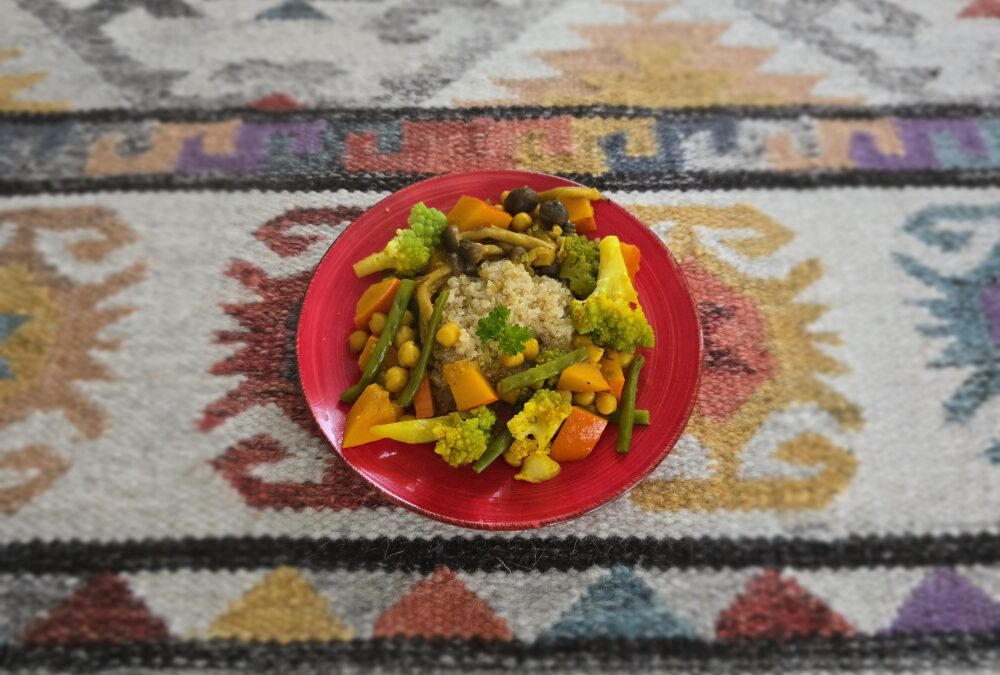 • 2 kubki ulubionych warzyw; ja użyłam pieczarek, zielonego kalafiora, dyni, fasolki szparagowej oraz ugotowanej ciecierzycy