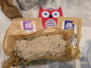 Dodaj sól, czarnuszkę, pokrojone orzechy i śliwki, wymieszaj. Jeśli trzeba, dodaj trochę wody. Ciasto powinno mieć konsystencję miękką, wilgotną.