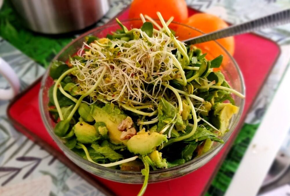 Od kilku miesięcy to jest moje ulubione danie na śniadanie. Ma mnóstwo błonnika, witamin, minerałów, zdrowych tłuszczy potrzebnych do pracy mózgu i wszystkich komórek, cudownie smakuje i syci na kilka godzin. Nie zamieniłabym tej wspaniałej sałaty na żadne rogaliki ani słodycze!!