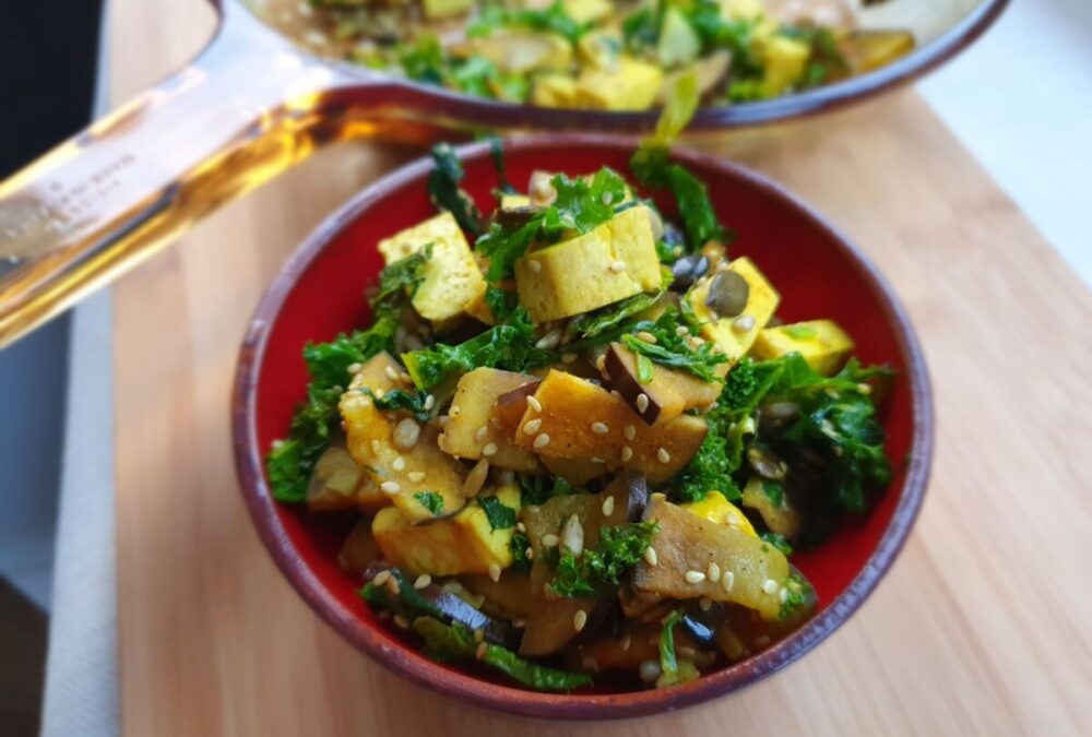 Śniadanie ze szpinakiem i tofu