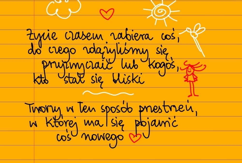 Żółte kartki Przestrzeń wtorek, 19.03.2024 Życie czasem zabiera coś, do czego zdążyliśmy się przyzwyczaić lub kogoś, kto stał się bliski. Tworzy w ten sposób przestrzeń, w której ma się pojawić coś nowego ❤ #żółtakartka #beatapawlikowska Udostępnij na Facebooku