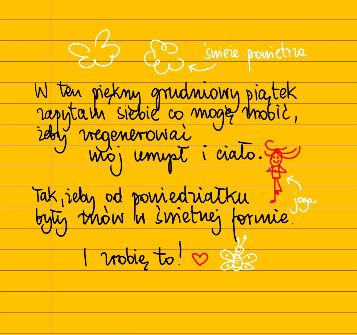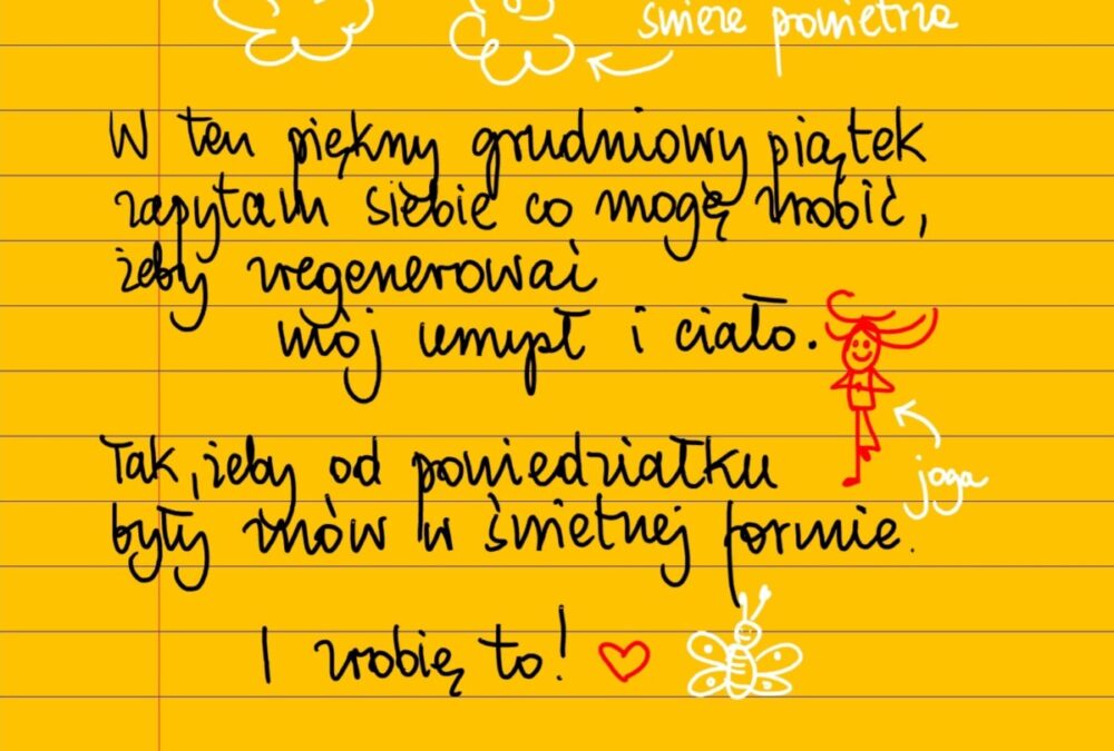 W ten piękny grudniowy piątek zapytam siebie w jaki sposób mogę zregenerować swój umysł i ciało, żeby od poniedziałku było znów w pełnej formie. I zrobię to! #żółtakartka