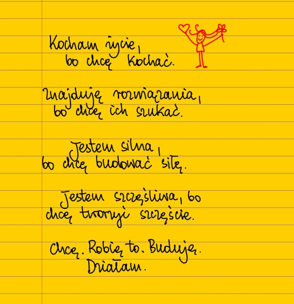 Kocham życie, bo chcę kochać. Znajduję rozwiązania, bo chcę ich szukać. Jestem silna, bo chcę budować siłę. Jestem szczęśliwa, bo chcę tworzyć szczęście. Chcę. Robię to. Buduję. Działam. #żółtakartka
