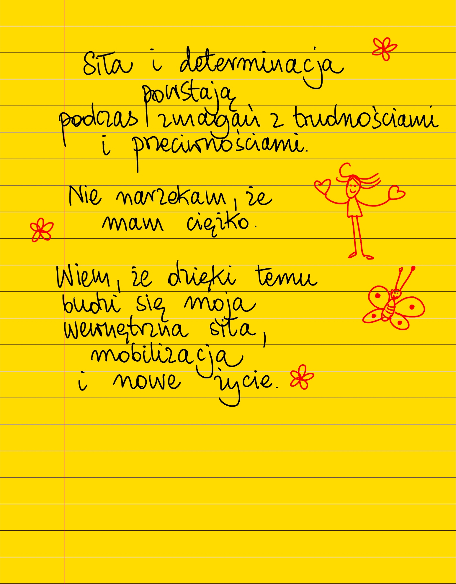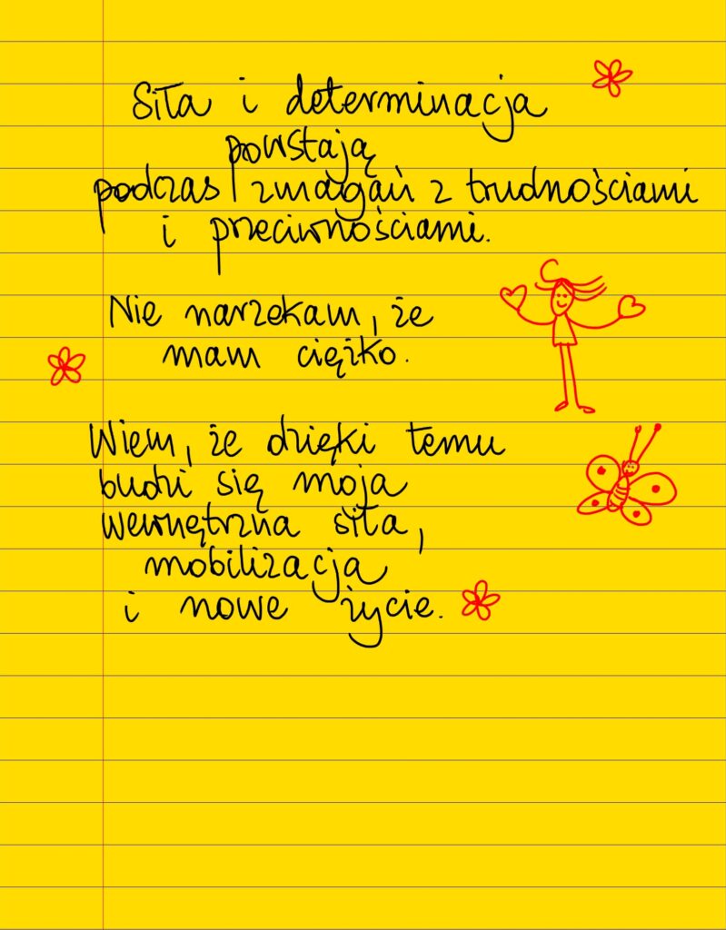 Żółte kartki Siła i determinacja wtorek, 07.11.2023 Siła i determinacja powstają podczas zmagań z trudnościami i przeciwnościami. Nie narzekam, że mam ciężko. Wiem, że dzięki temu budzi się moja wewnętrzna siła, mobilizacja i nowe życie ❤ #żółtakartka Udostępnij na Facebooku