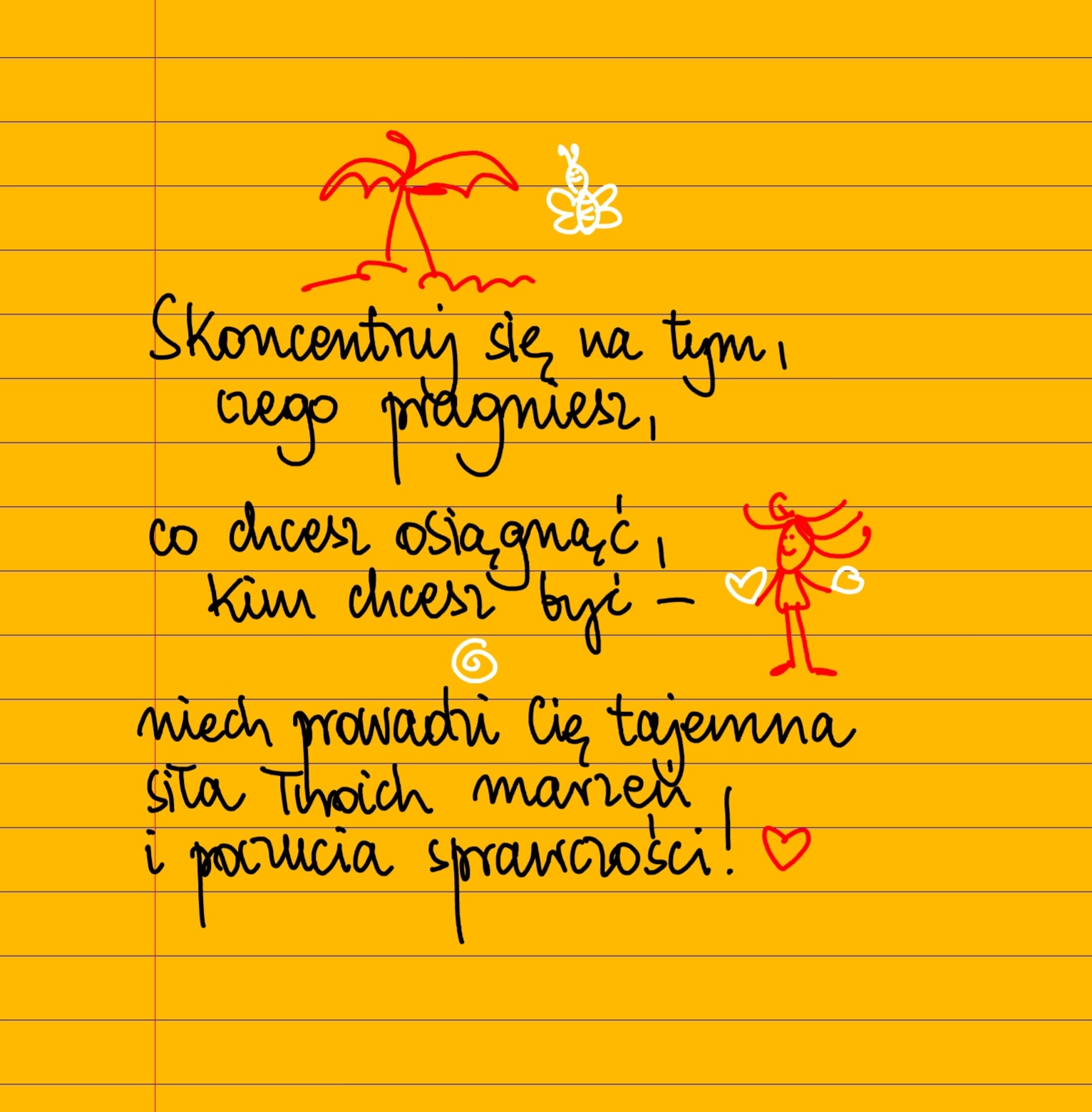 Kiedy koncentrujesz się na tym, co przeszkadza i boli, to rośnie, wypełnia myśli i staje się twoją tożsamością. Czy tak chcesz dalej żyć? Skoncentruj się na tym, czego pragniesz, co chcesz osiągnąć, kim chcesz być – niech prowadzi cię tajemna siła twoich marzeń i poczucia sprawczości! ❤ #żółtakartka