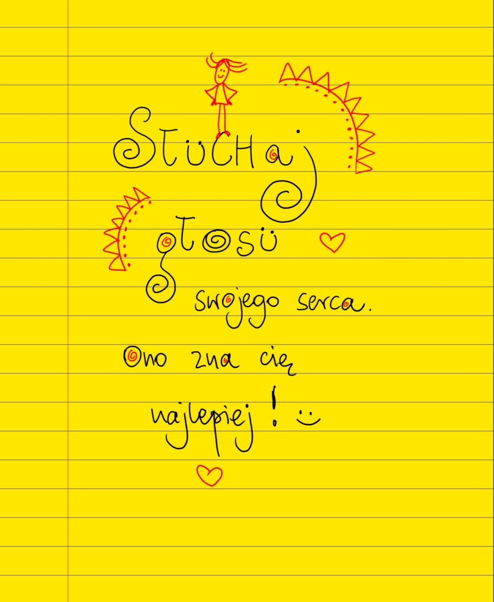 Żółte kartki Słuchaj głosu swojego serca wtorek, 09.11.2021 Słuchaj głosu swojego serca. Ono zna Cię najlepiej! #żółtakartka Udostępnij na Facebooku