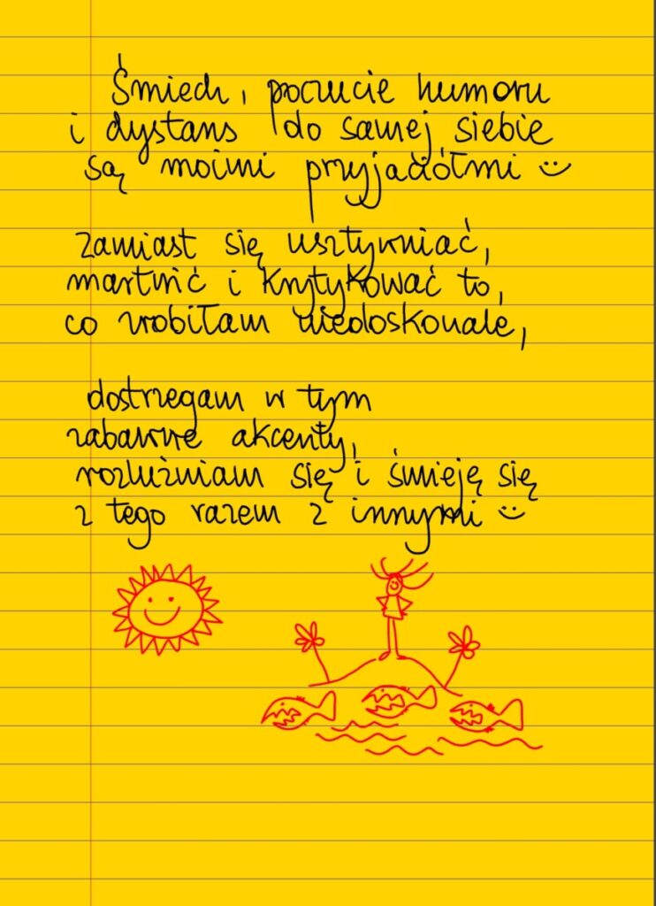 Ha,ha😆dzisiejsza zolta kartka jest specjalnie zaadresowana do mnie. Kiedys strasznie przejmowalam sie popelnianymi gafami. Dzisiaj smieje sie juz z tego bo wiem, ze nie maja one zadnego znaczenia. Pozdrawiam serdecznie Pani Beatko☀🌻 Odpowiedz
