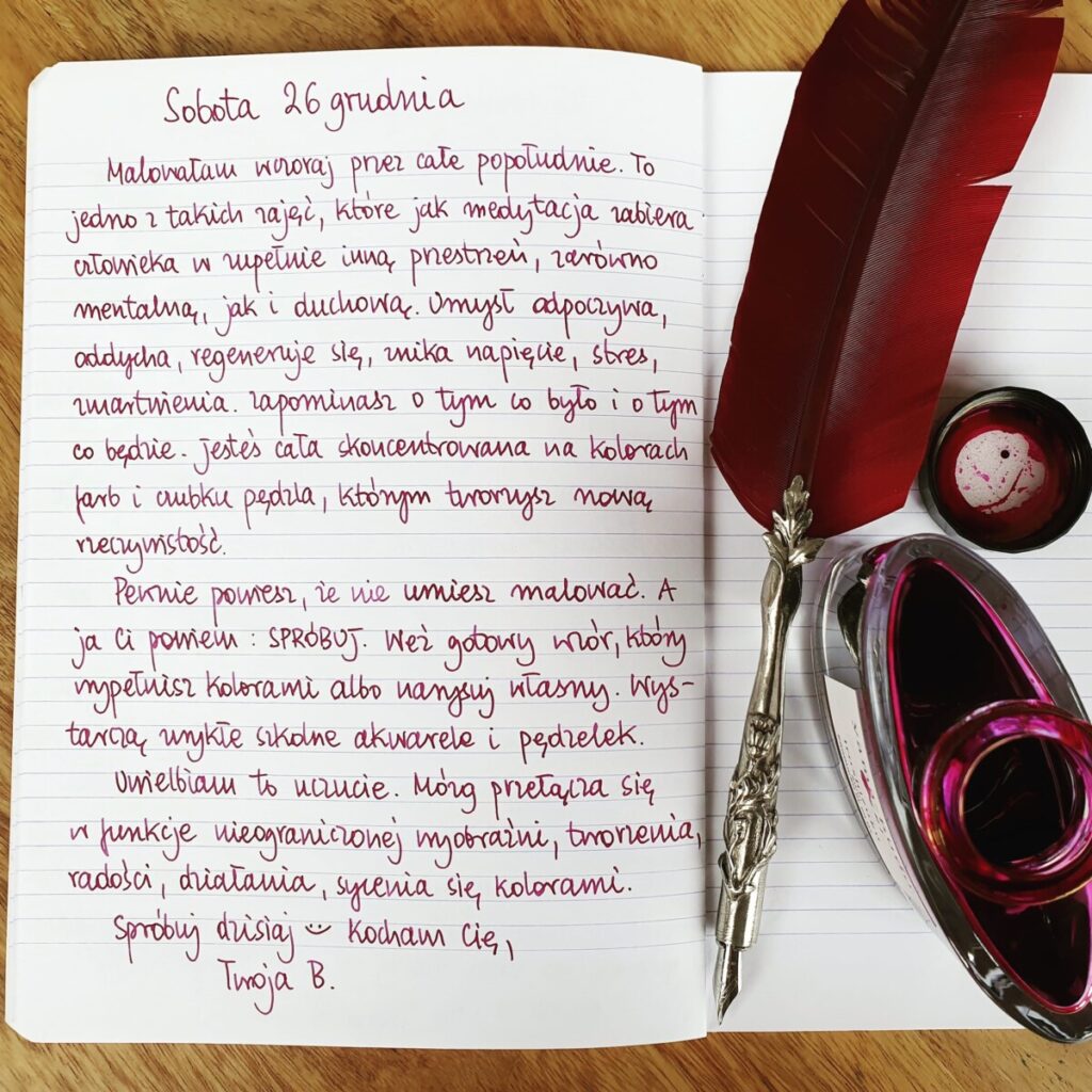 Malowałam wczoraj przez całe popołudnie. To jedno z takich zajęć, które jak medytacja zabiera człowieka w zupełnie inną przestrzeń, zarówno mentalną, jak i duchową. Umysł odpoczywa, oddycha, regeneruje się, znika napięcie, stres, zmartwienia. Zapominasz o tym co było i o tym co będzie. Jesteś cała skoncentrowana na kolorach farb i czubku pędzla, którym tworzysz nową rzeczywistość.
