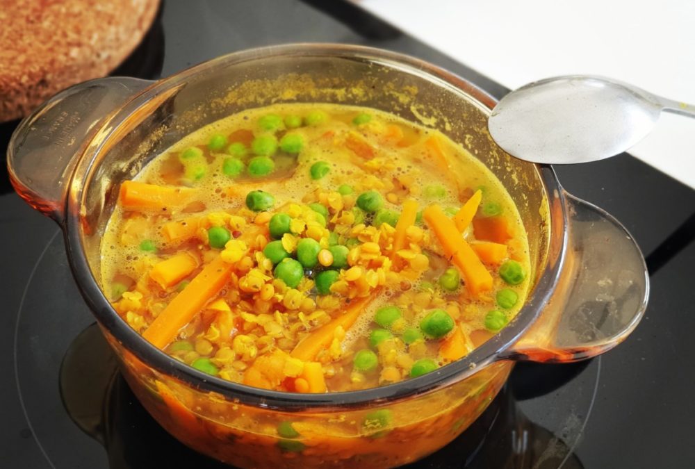 Soczewica z marchewką i zielonym groszkiem