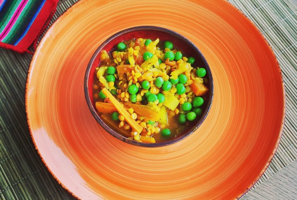 Soczewica z marchewką i zielonym groszkiem