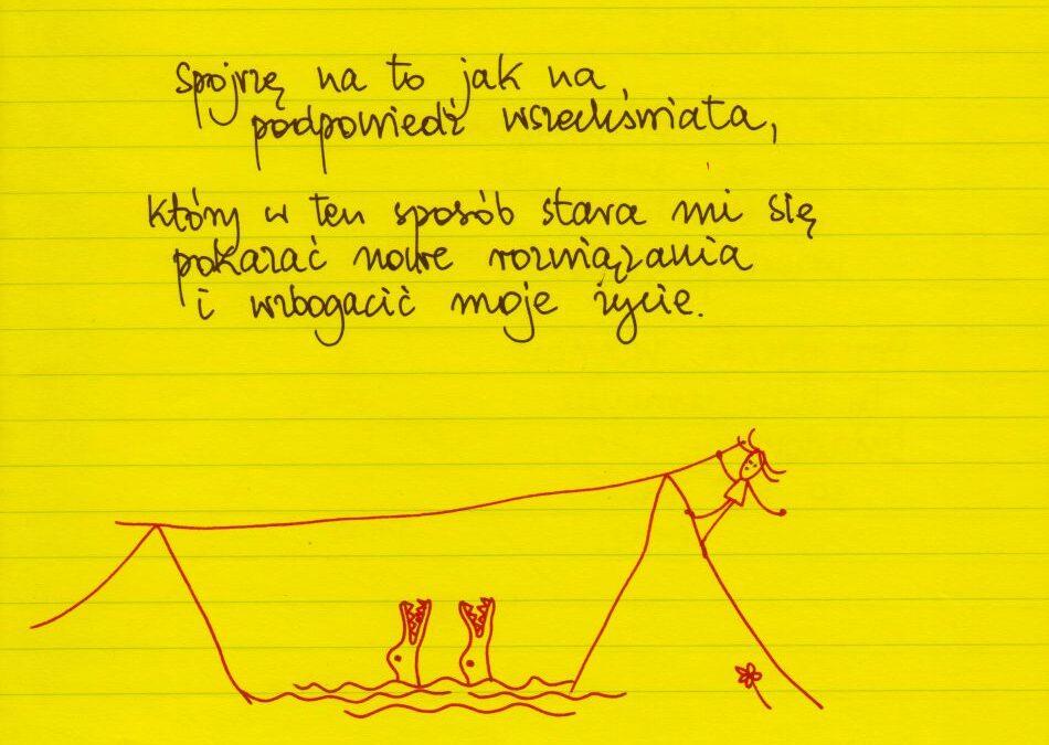 Żółte kartki Spojrzę na to jak na podpowiedź wszechświat środa, 01.12.2021 Spojrzę na to jak na podpowiedź wszechświata, który w ten sposób stara mi się pokazać nowe rozwiązania i wzbogacić moje życie. #żółtakartka Udostępnij na Facebooku